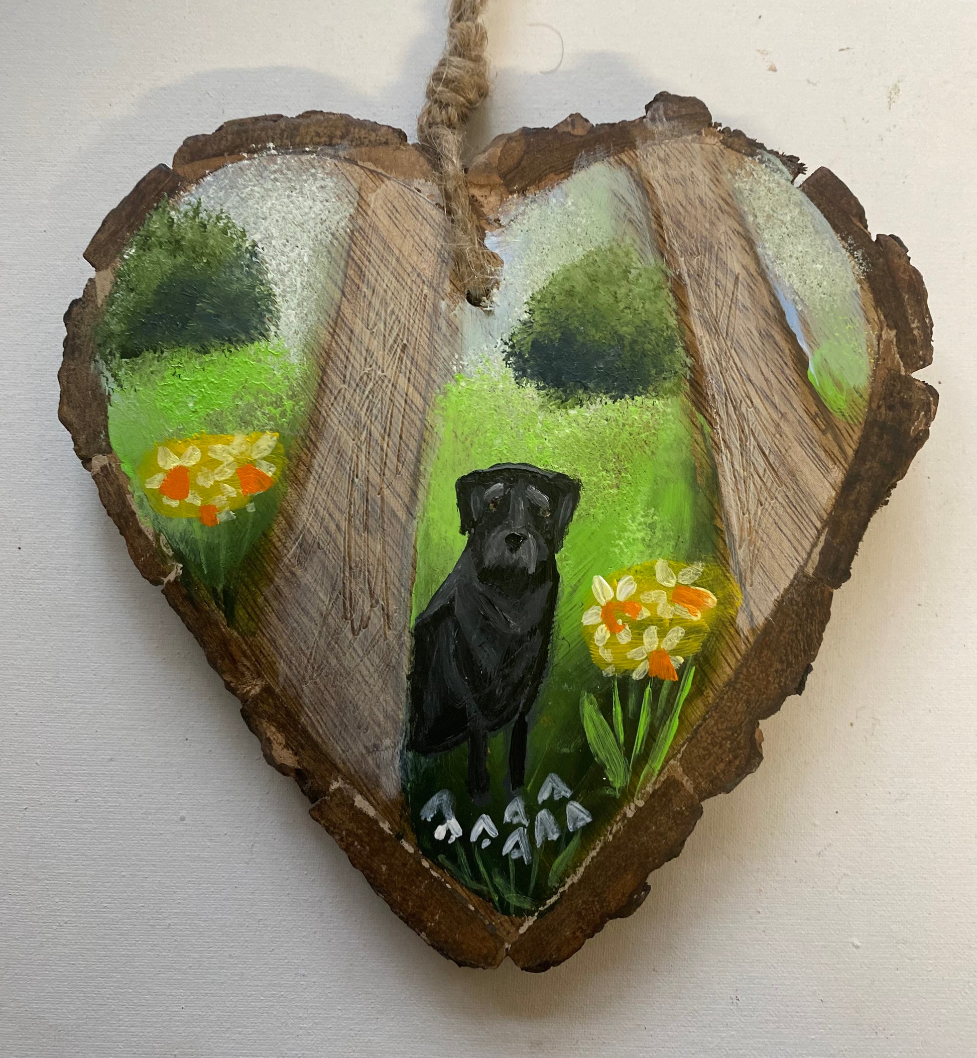 14cm wide handpainted,signed and varnished wooden ‘slice’ hanger