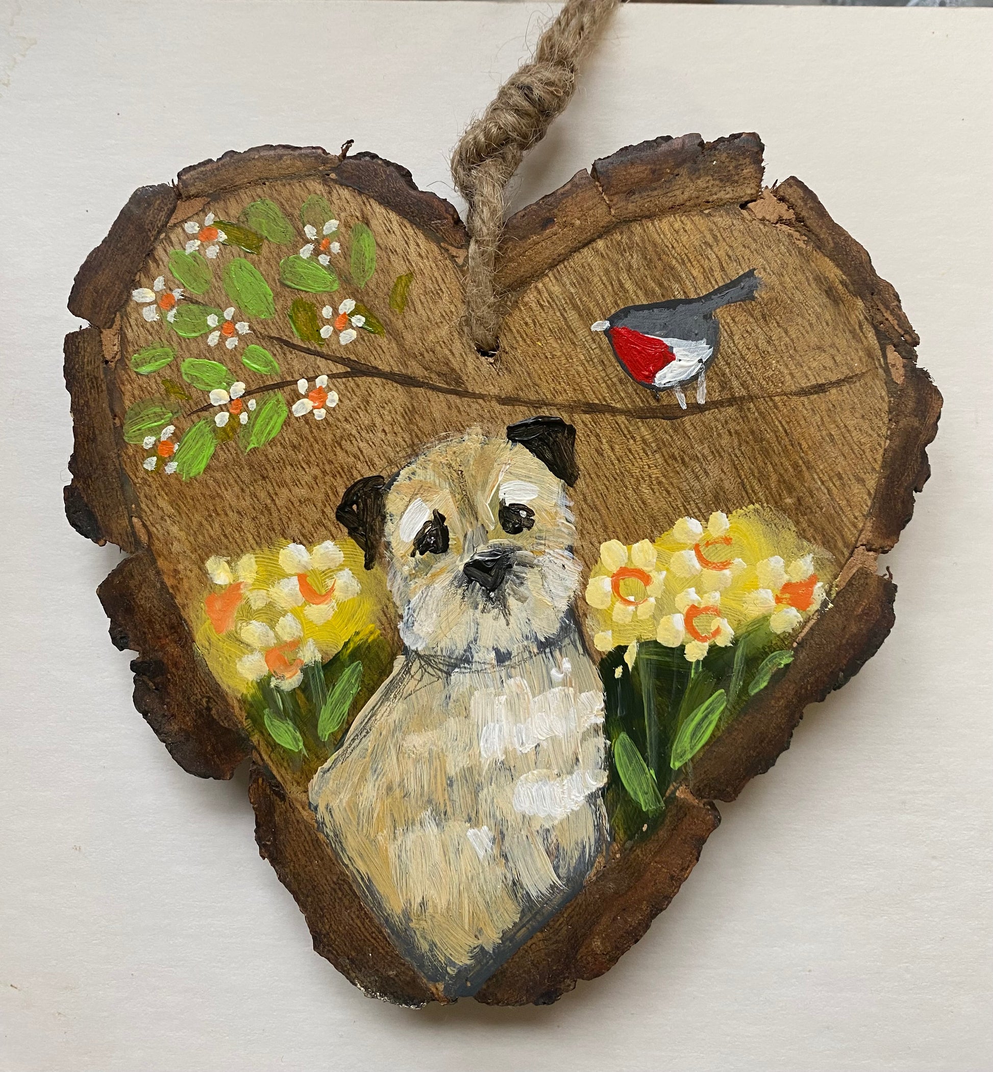 13cm wide hand painted , signed and varnished wooden ‘slice’ hanger