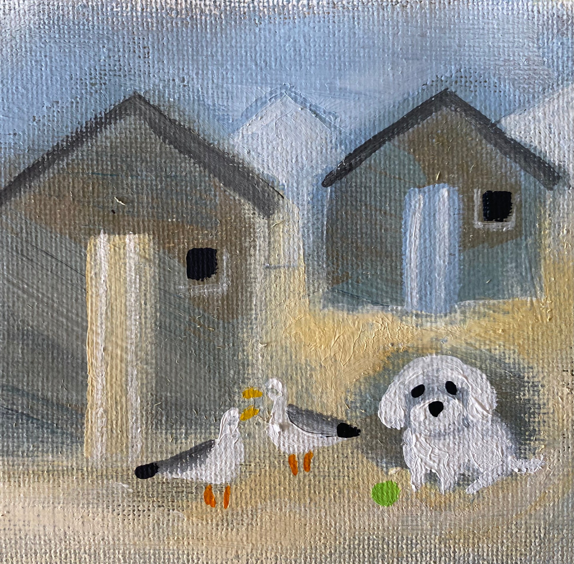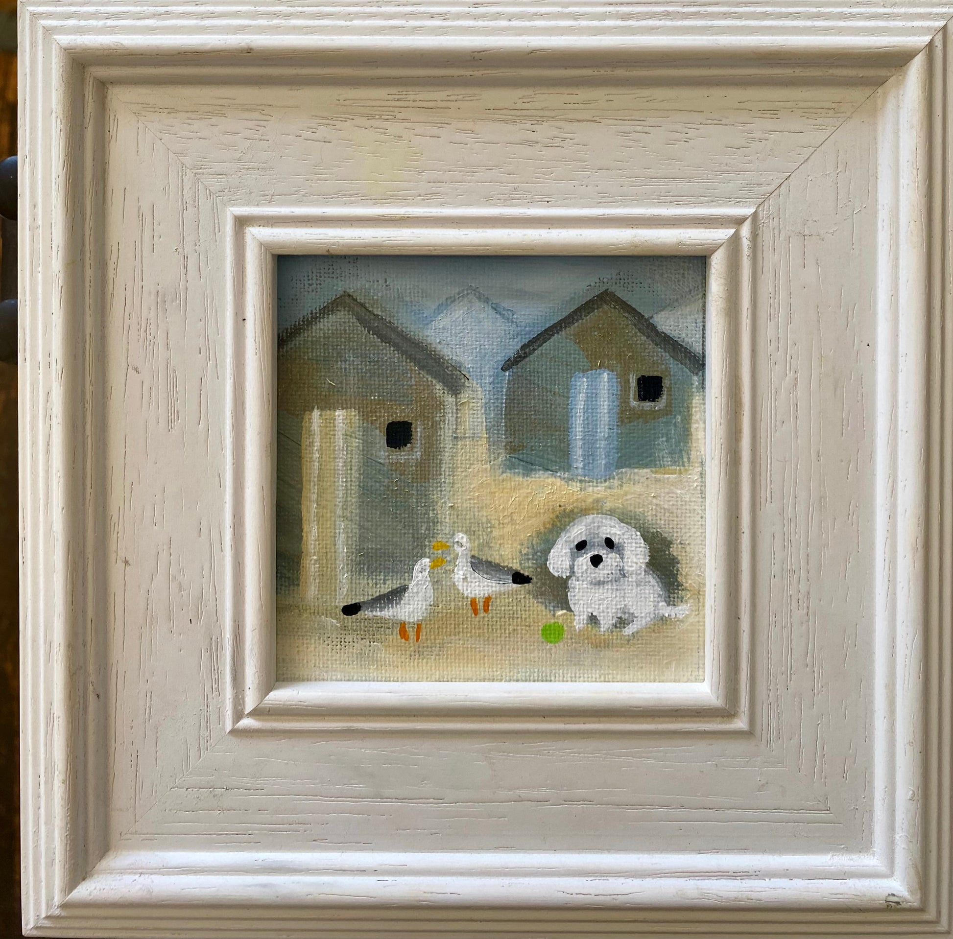 10cm x 10cm acrylic on canvas paper in a bespoke wooden frame.