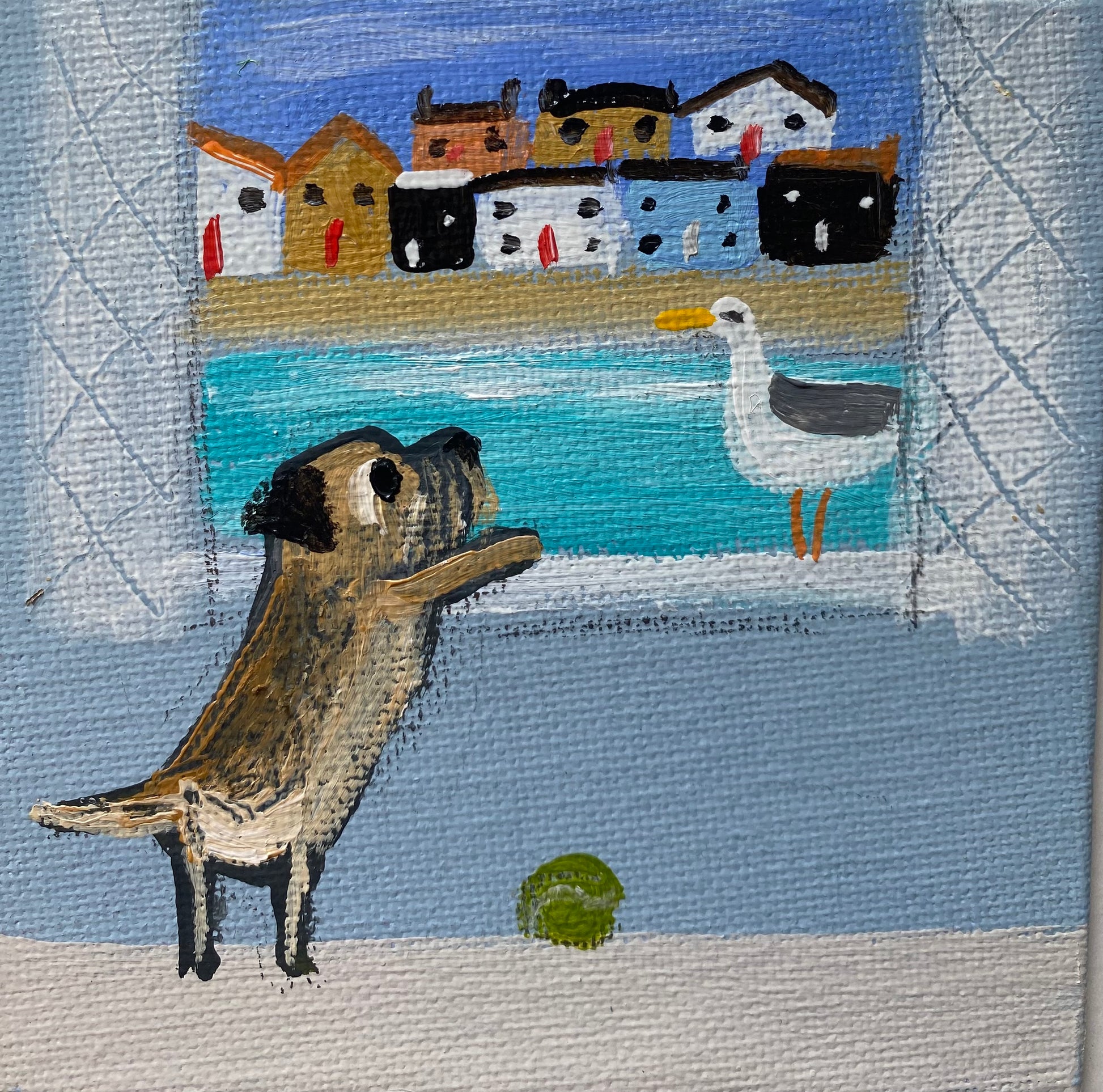 10cm x 10cm emulsion and acrylic on canvas board in a bespoke wooden frame