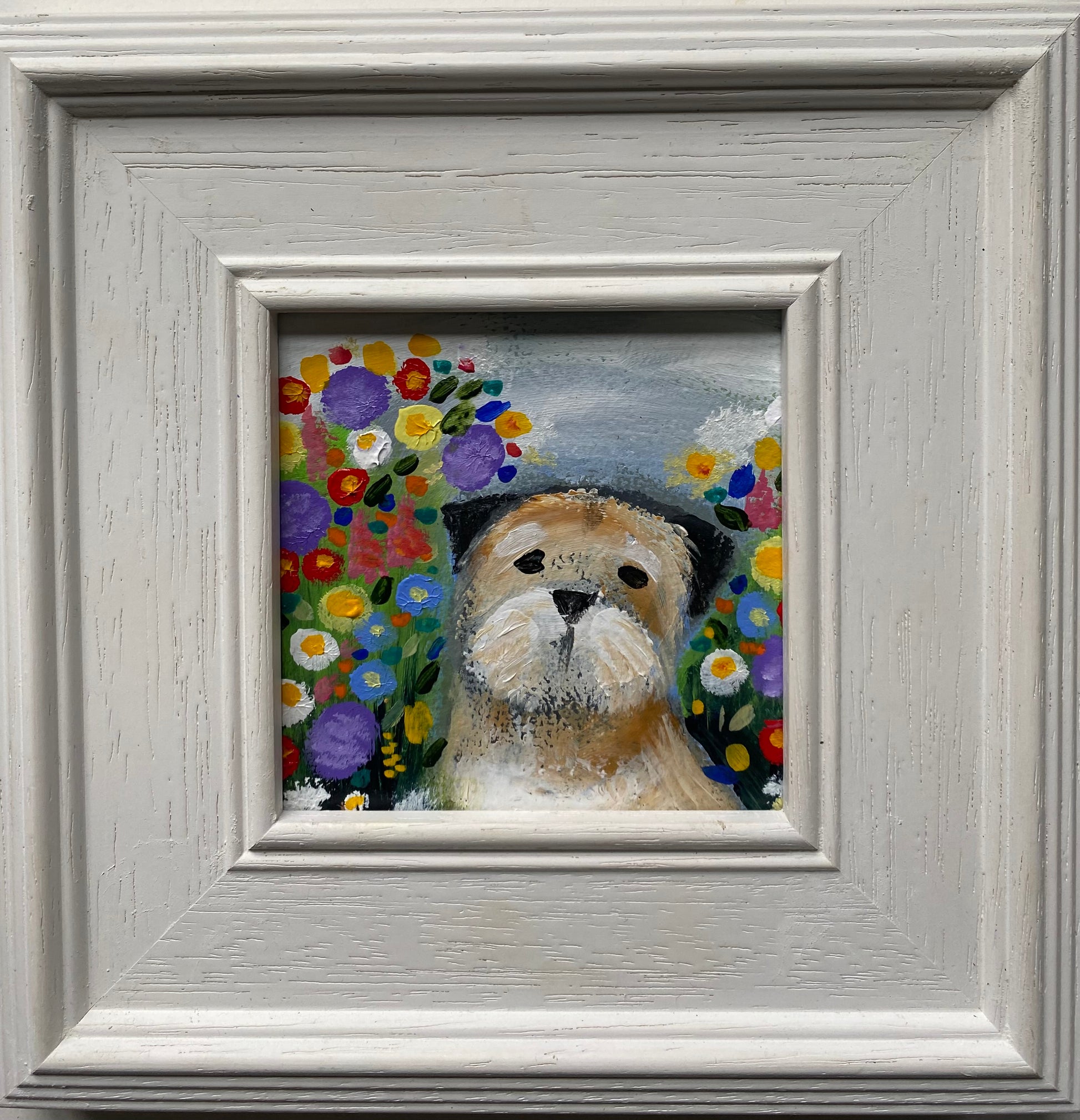 10cm x 10cm acrylic on canvas board in a bespoke wooden frame