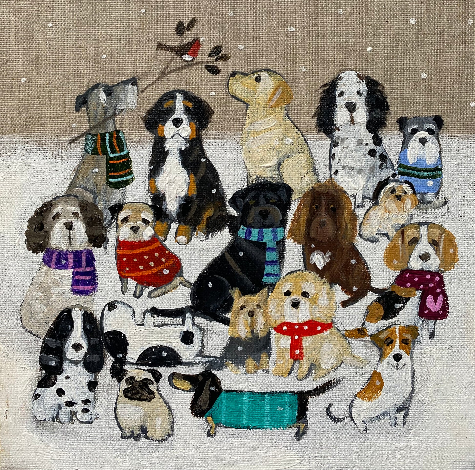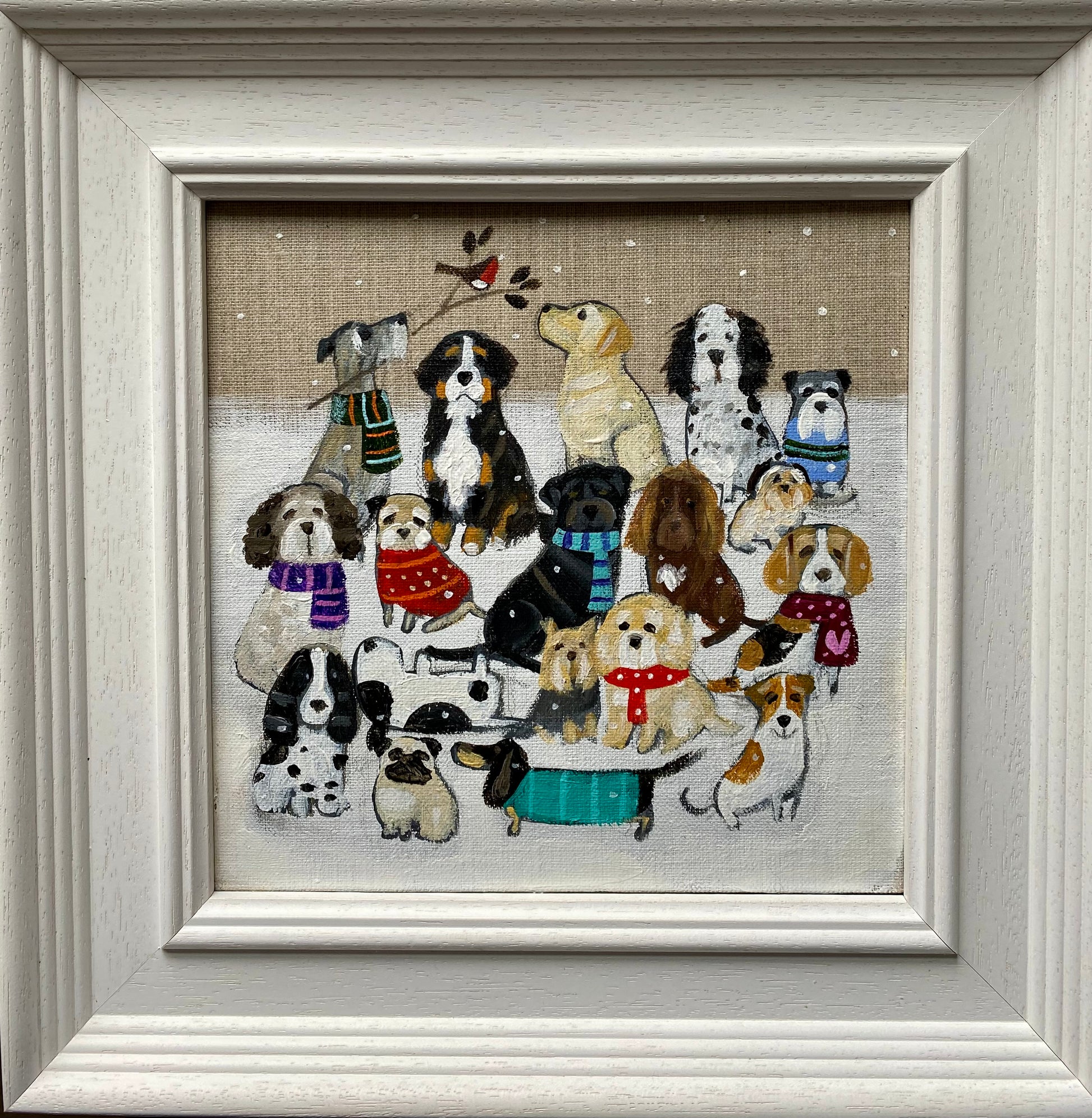 20cm x 20cm acrylic on linen board in a bespoke wooden frame.