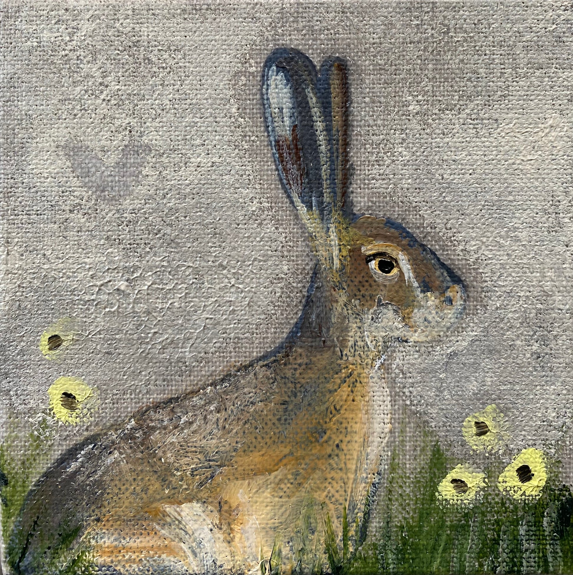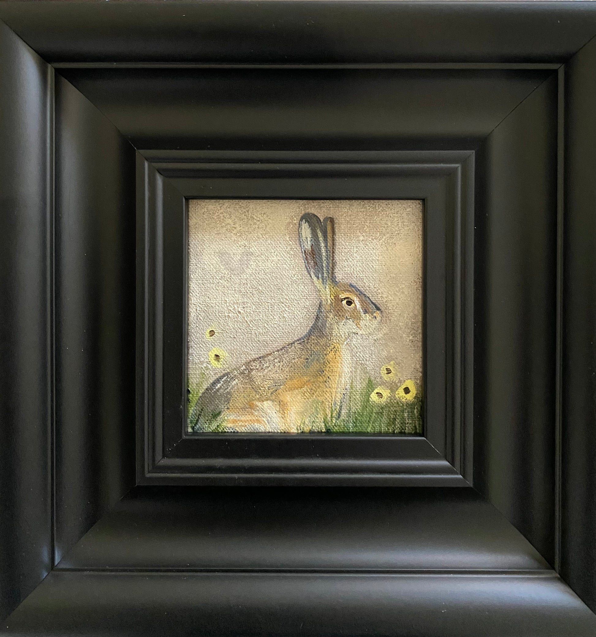10cm x 10cm linen board in a heavy wooden black bespoke frame.