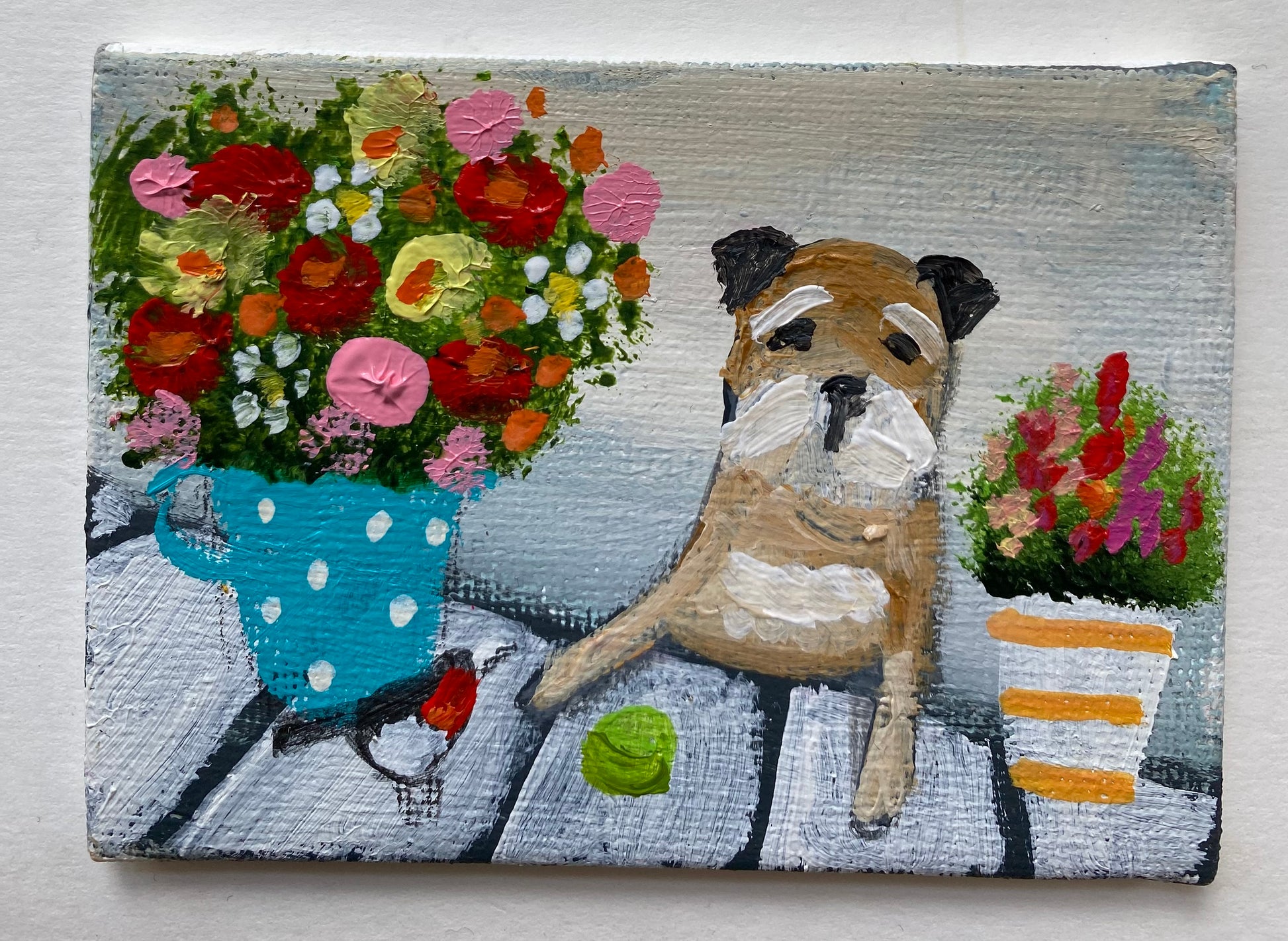2.5” x 3.5” mini canvas board in a bespoke wooden frame