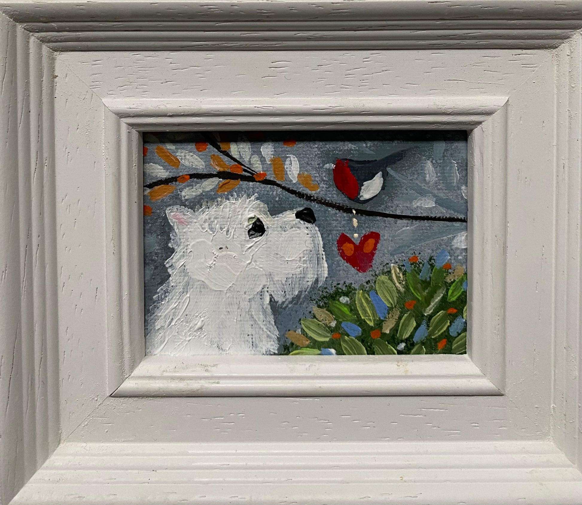 2.5” x 3.5” mini canvas board original in a bespoke wooden frame