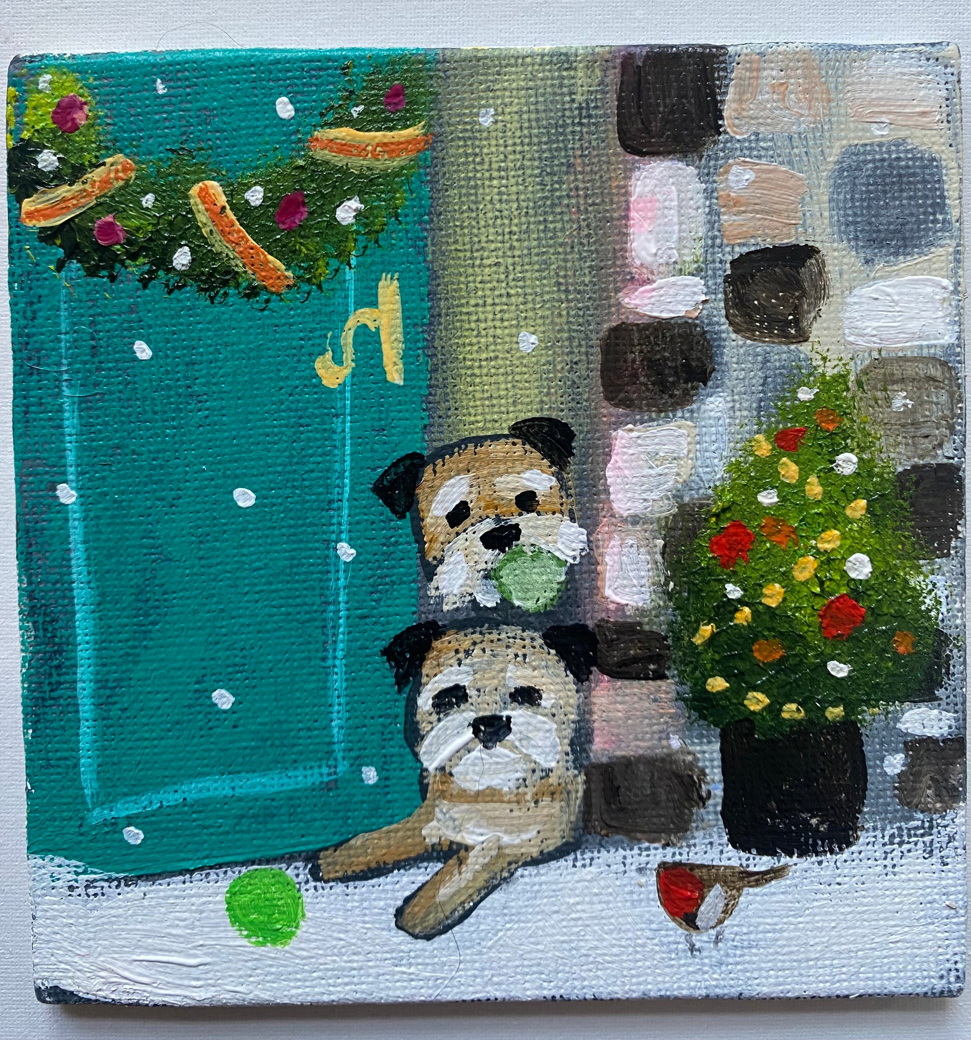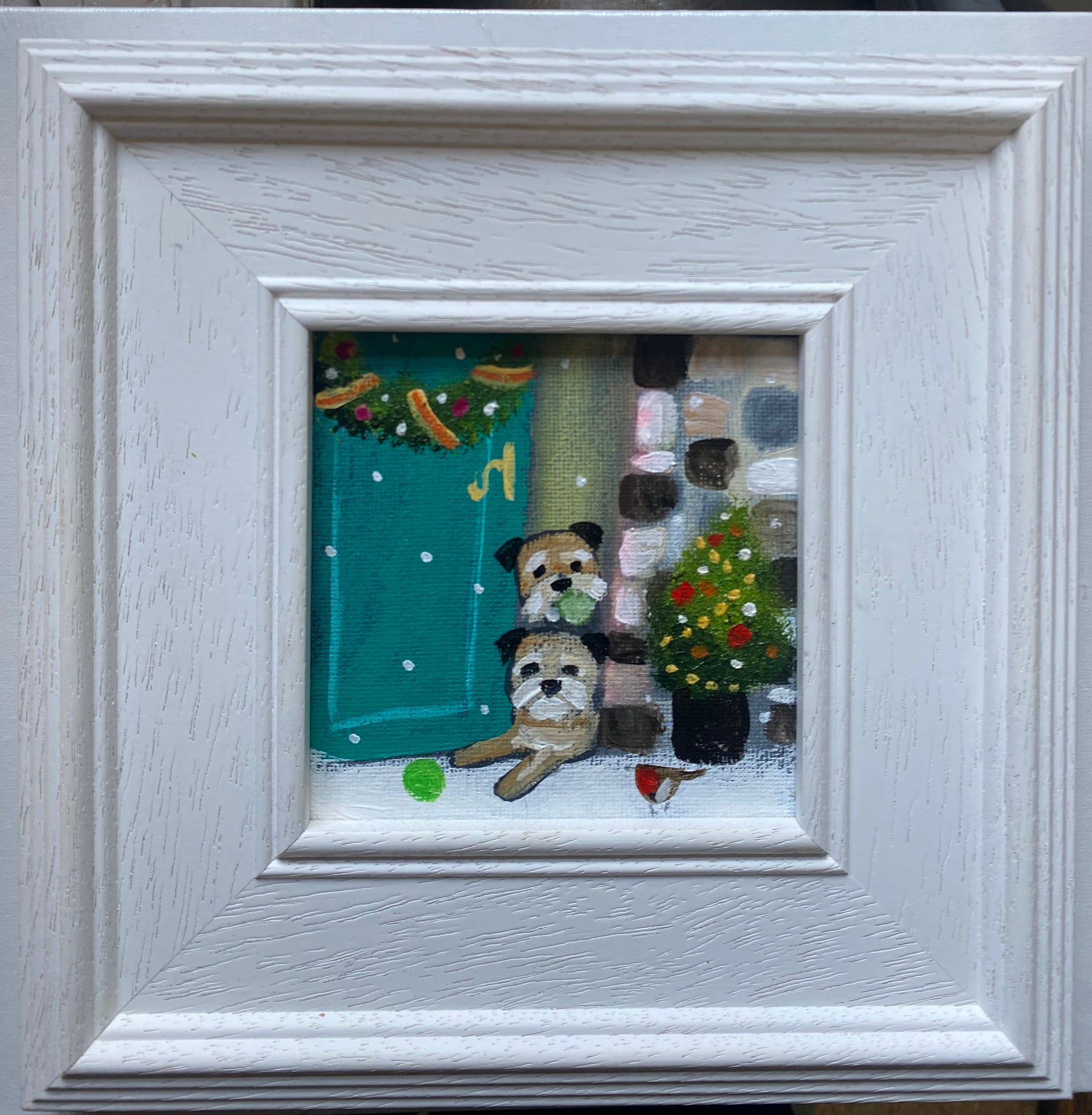 10cm x 10cm acrylic on canvas board in a bespoke wooden frame