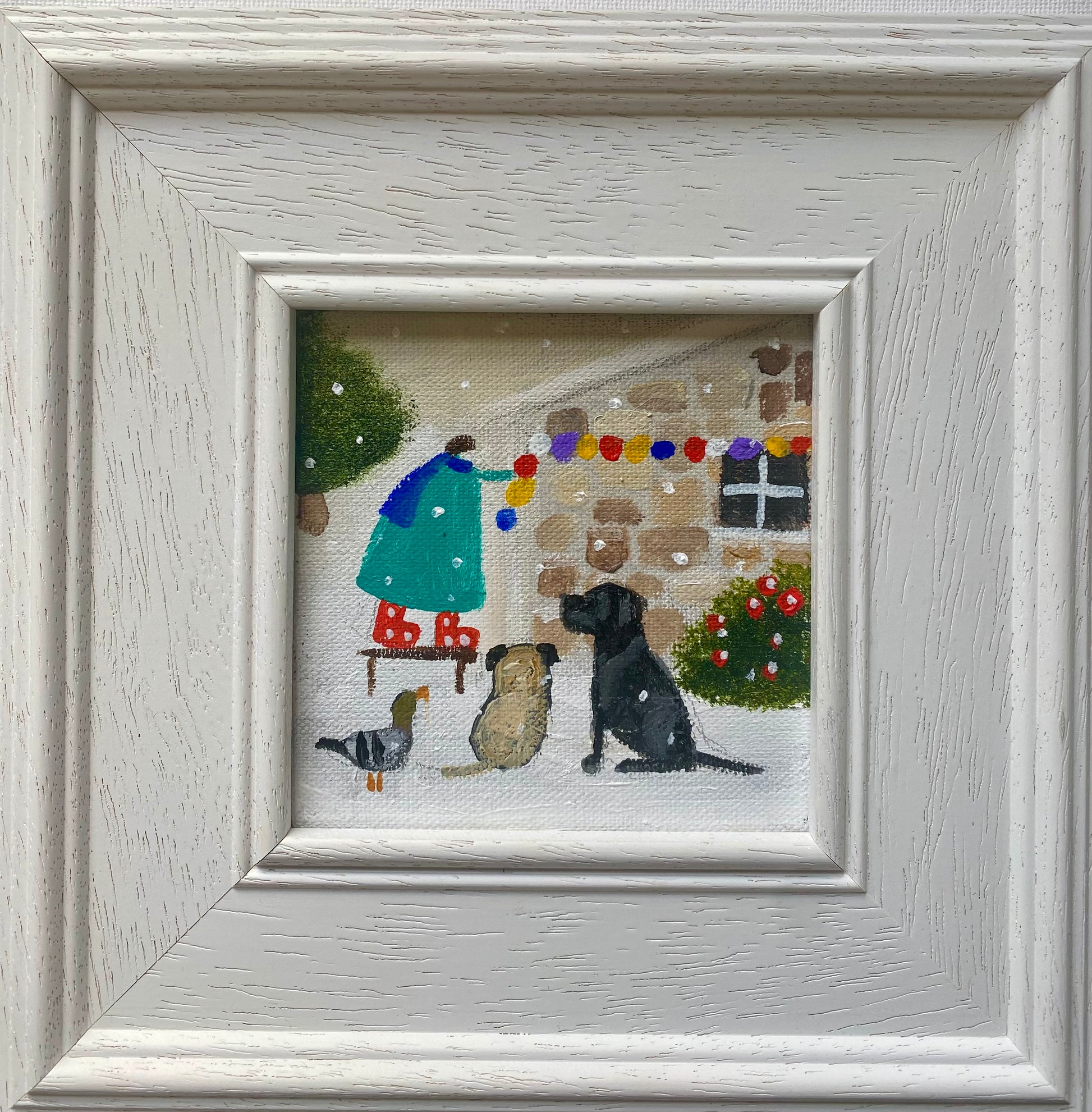 10cm x 10cm acrylic on linen board. In a bespoke wooden frame