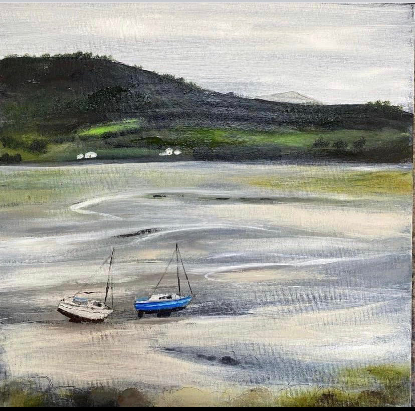 30cm x 30cm acrylic on canvas board view of a popular Anglesey spot. Painting is in a bespoke wooden frame.