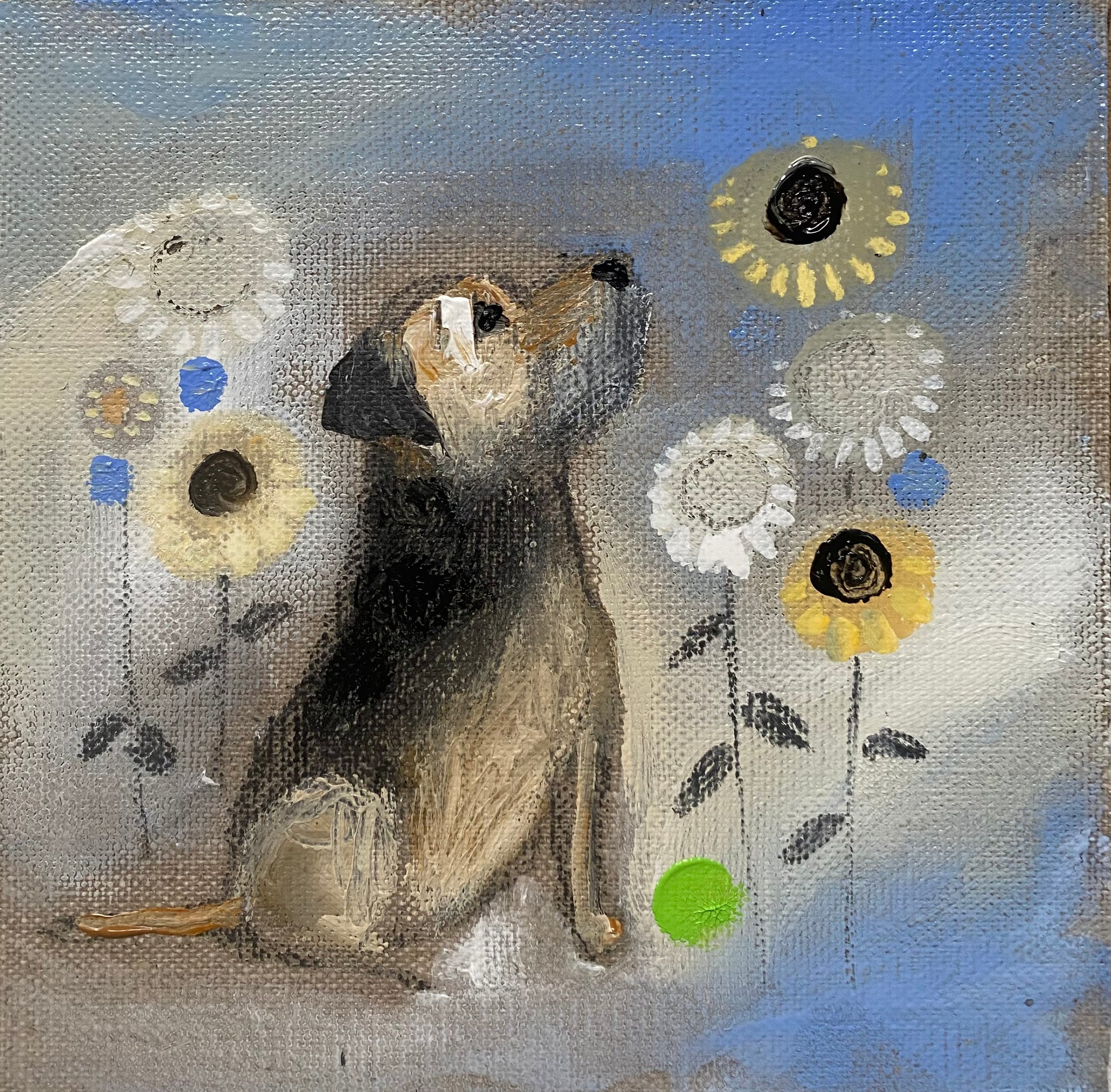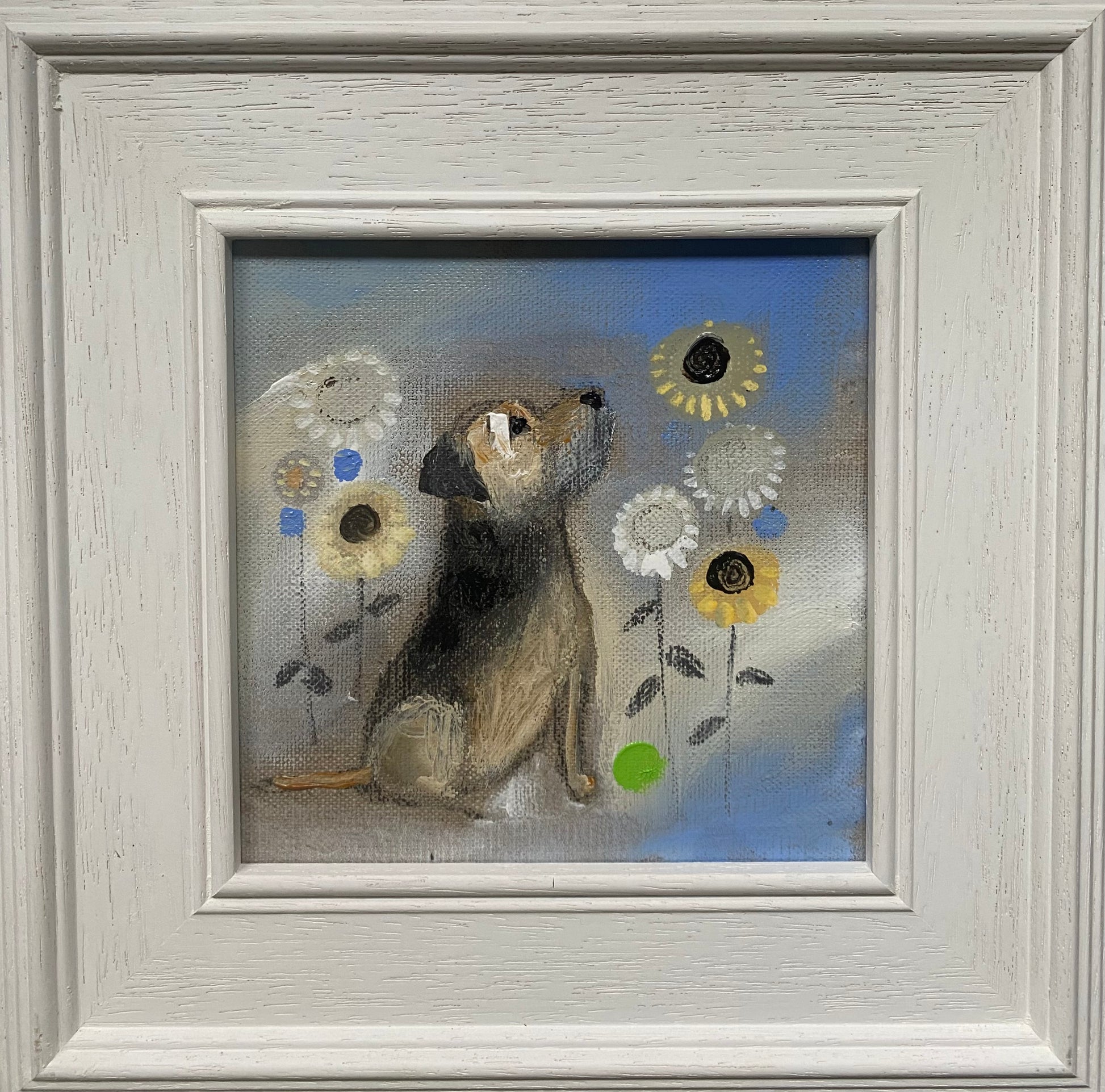 6” x 6” acrylic and pencil on linen board in a bespoke wooden frame