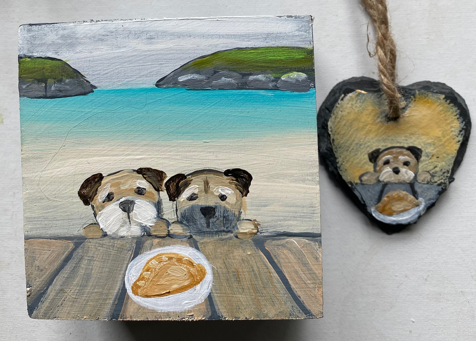 10cm chunky wooden block. Will stand or hang. Short sides also painted in a Farrow & Ball dark blue shade.