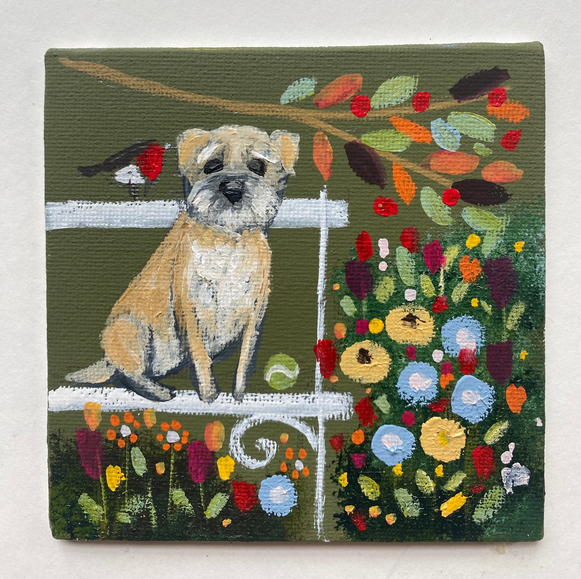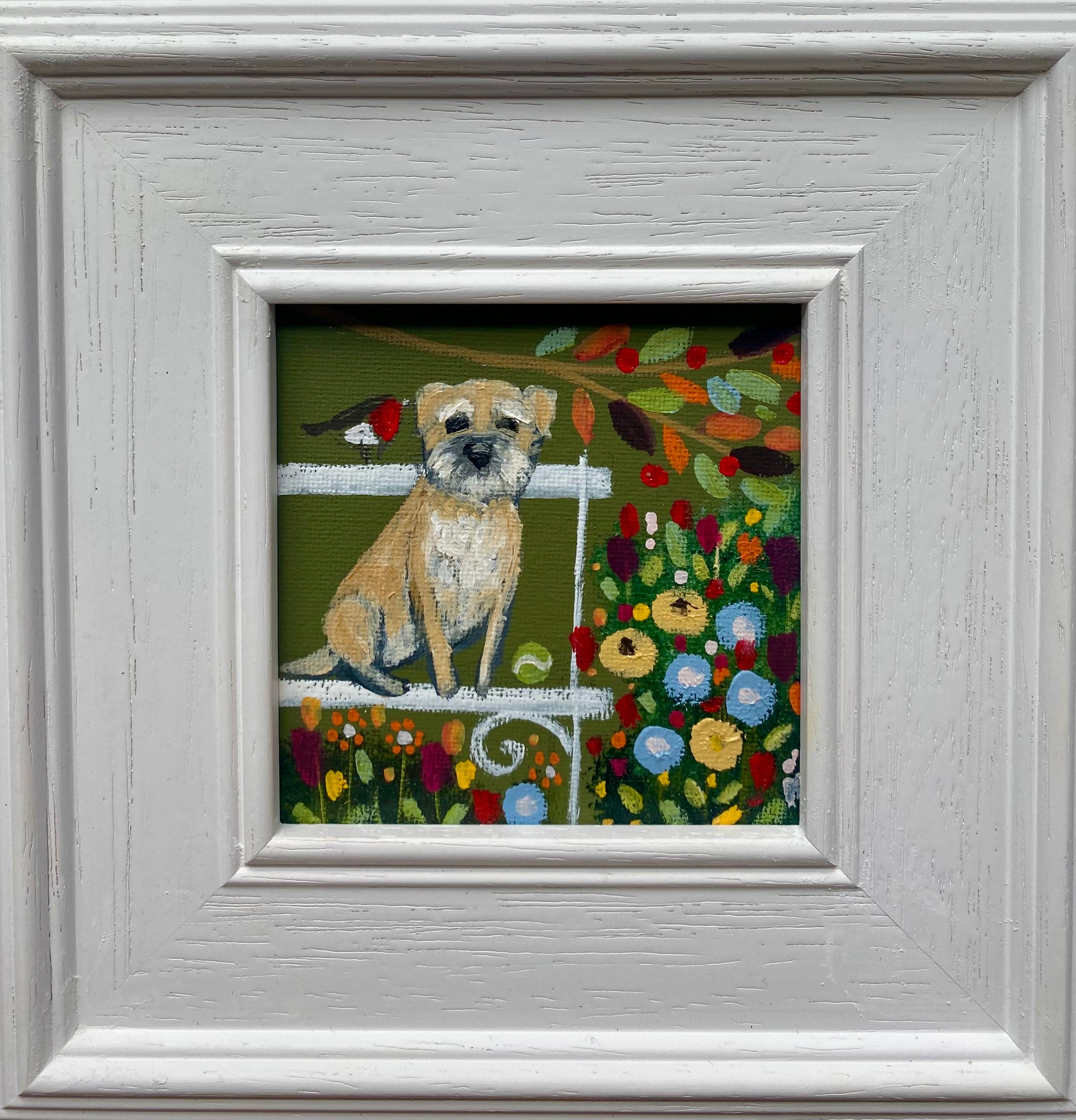 10cm x 10cm acrylic on canvas board in a bespoke, wooden frame