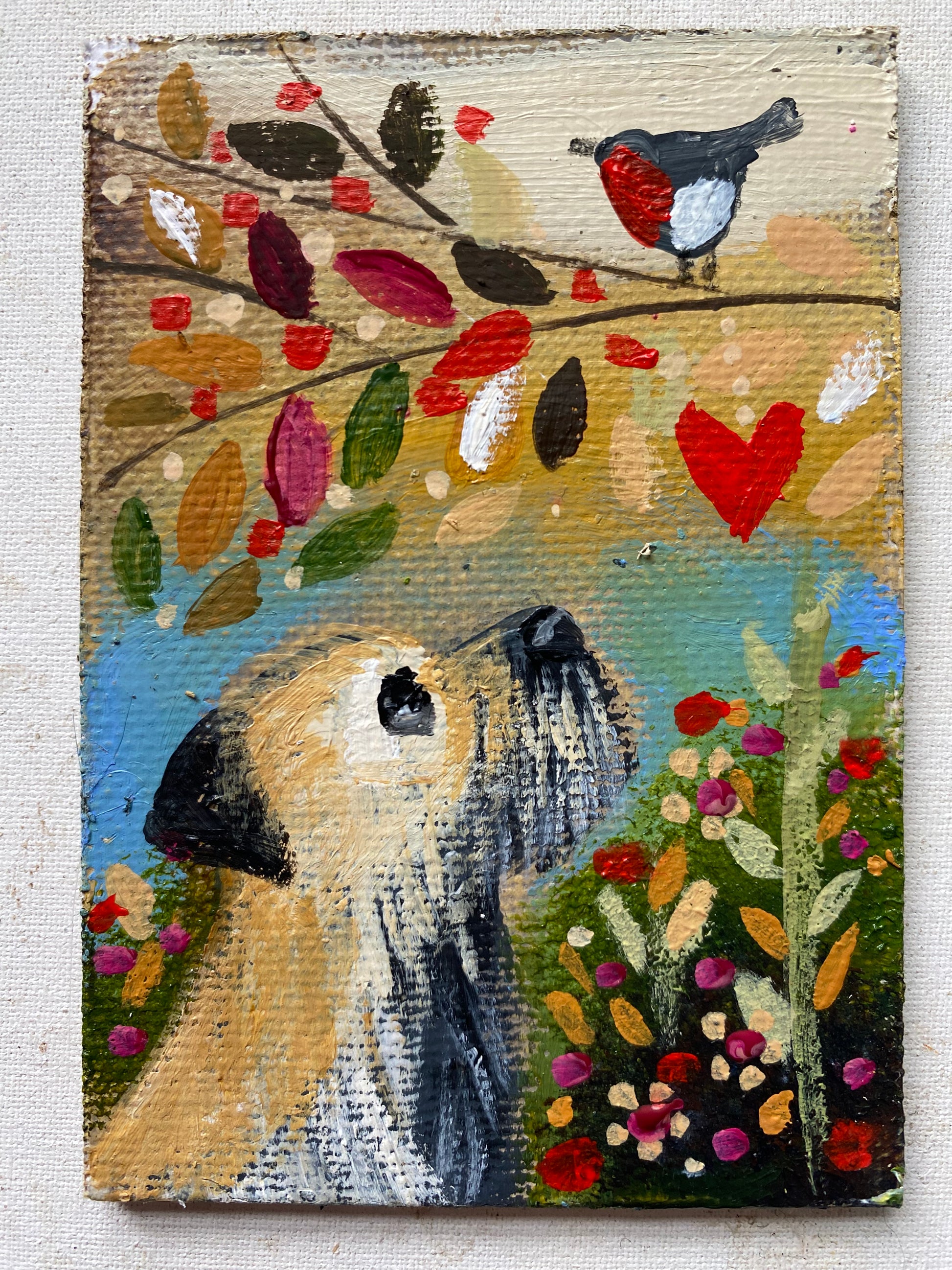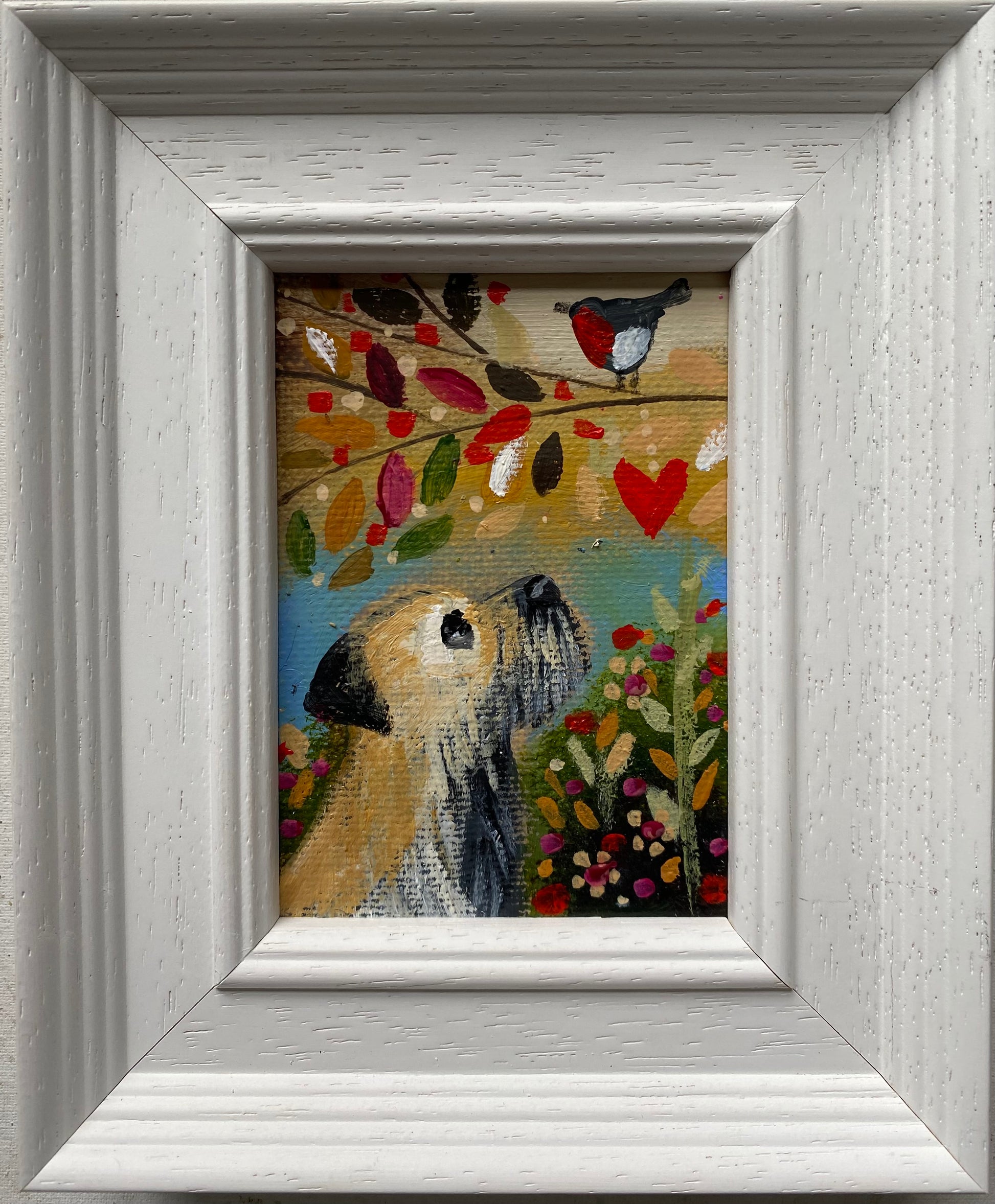 2.5” x 3.5” mini canvas board original in a bespoke wooden frame
