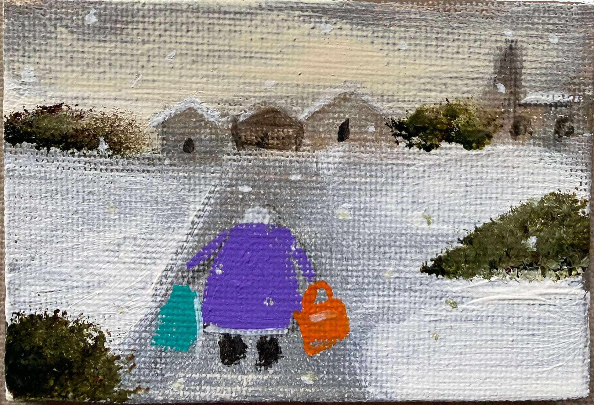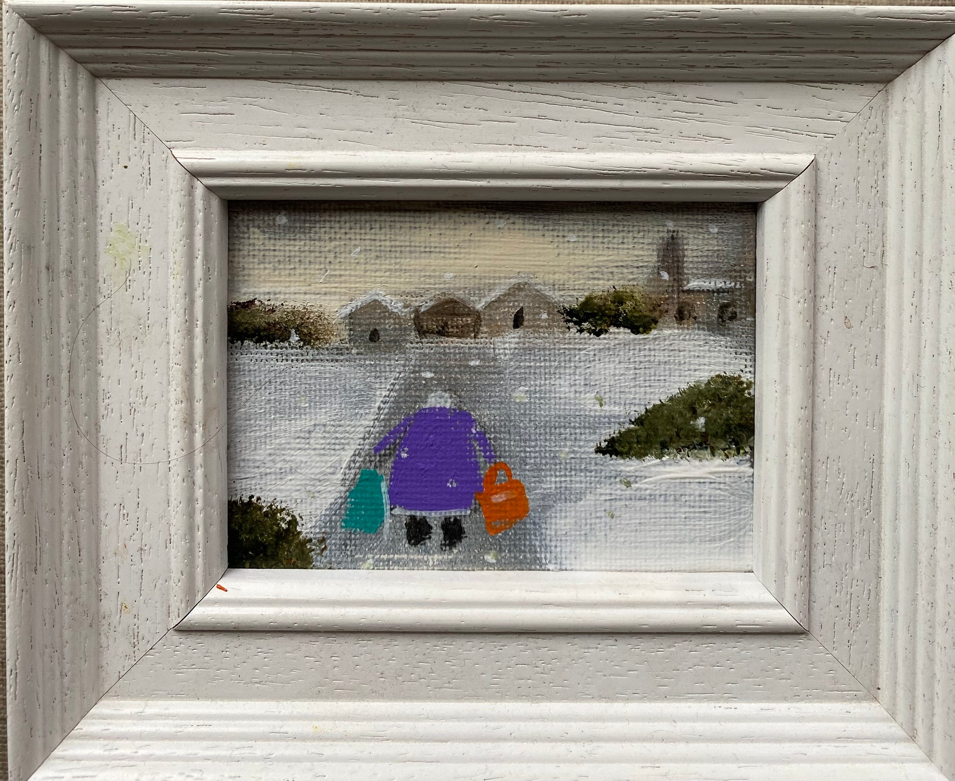 2.5” x 3.5” mini canvas board in a bespoke wooden frame.