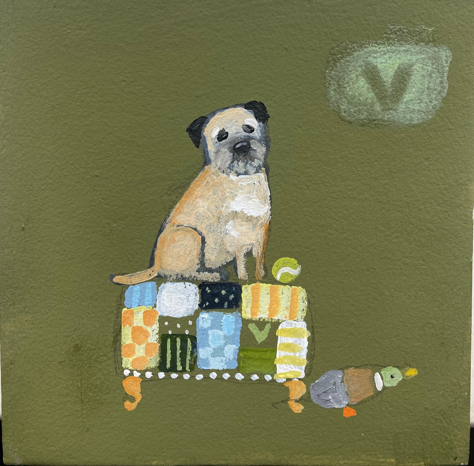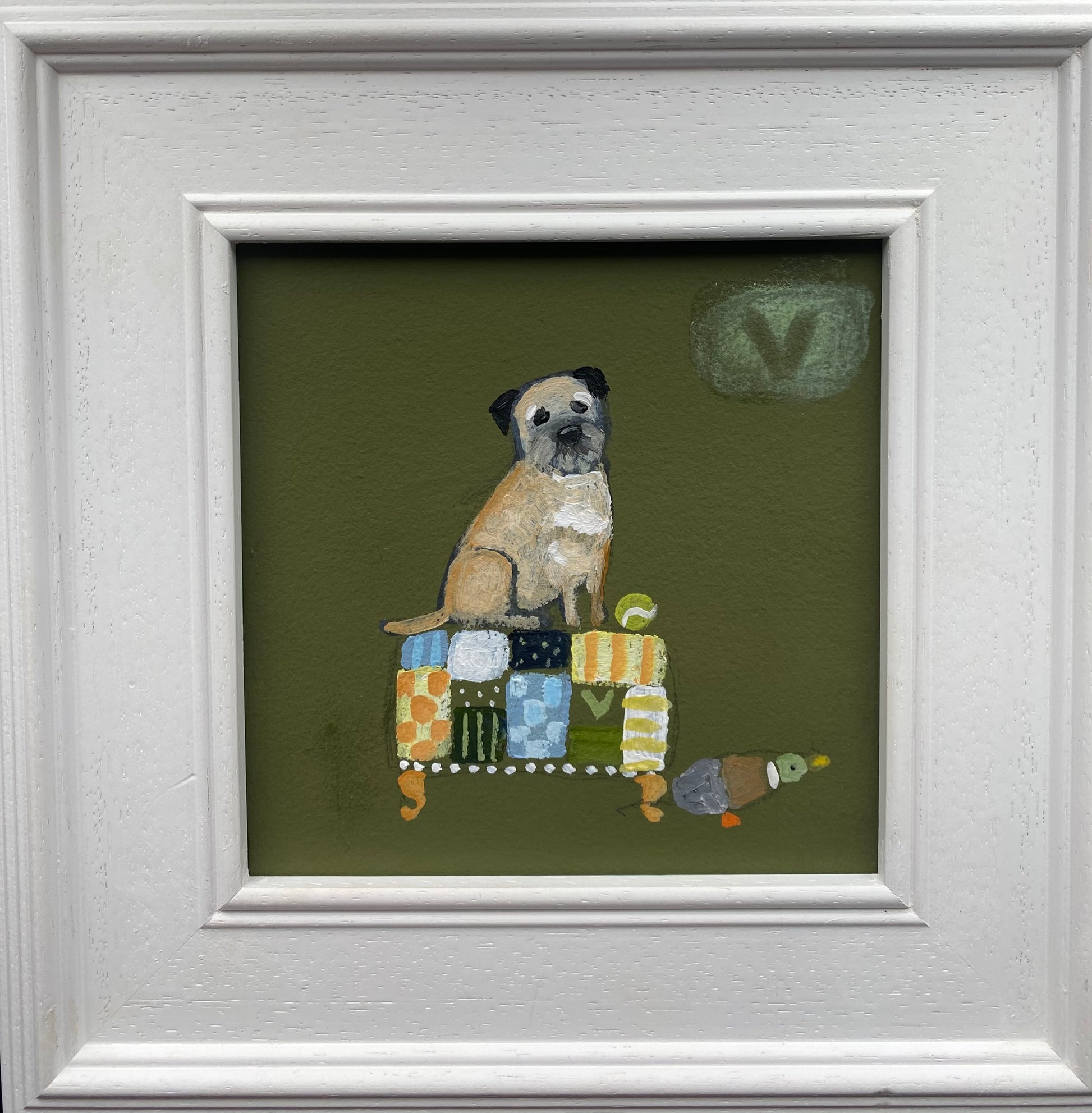15cm x 15cm acrylic and emulsion on canvas board in a bespoke wooden frame. Background shade is Farrow & Ball ‘ Bancha’