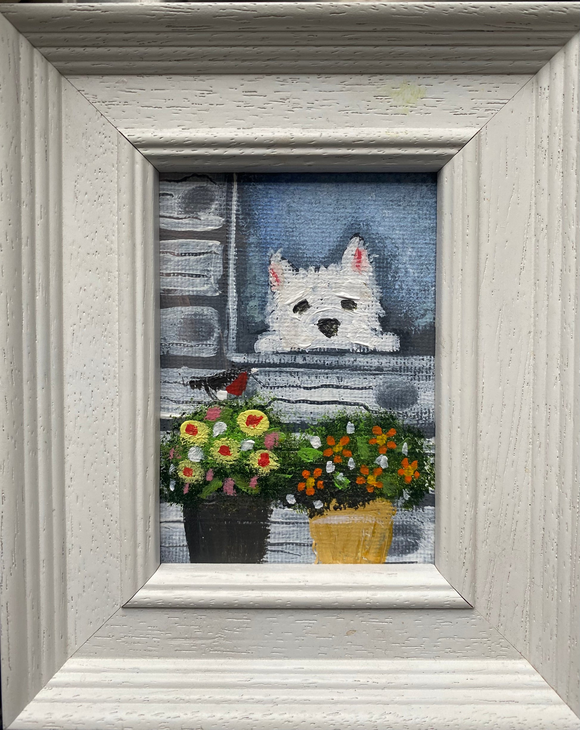 2.5” x 3.5 mini canvas board in a bespoke wooden frame.