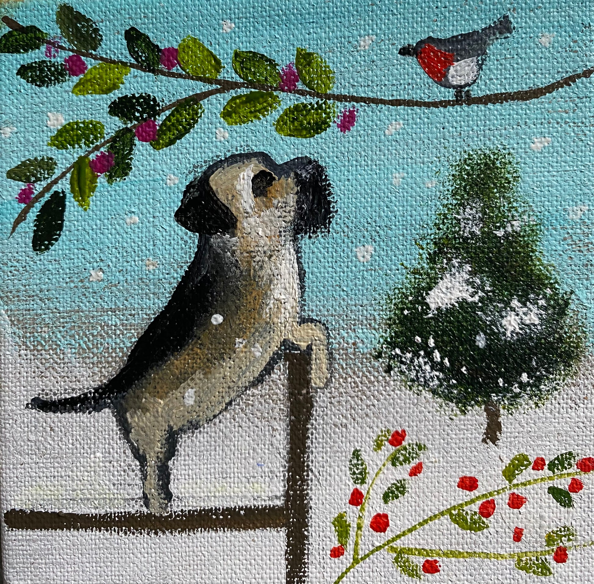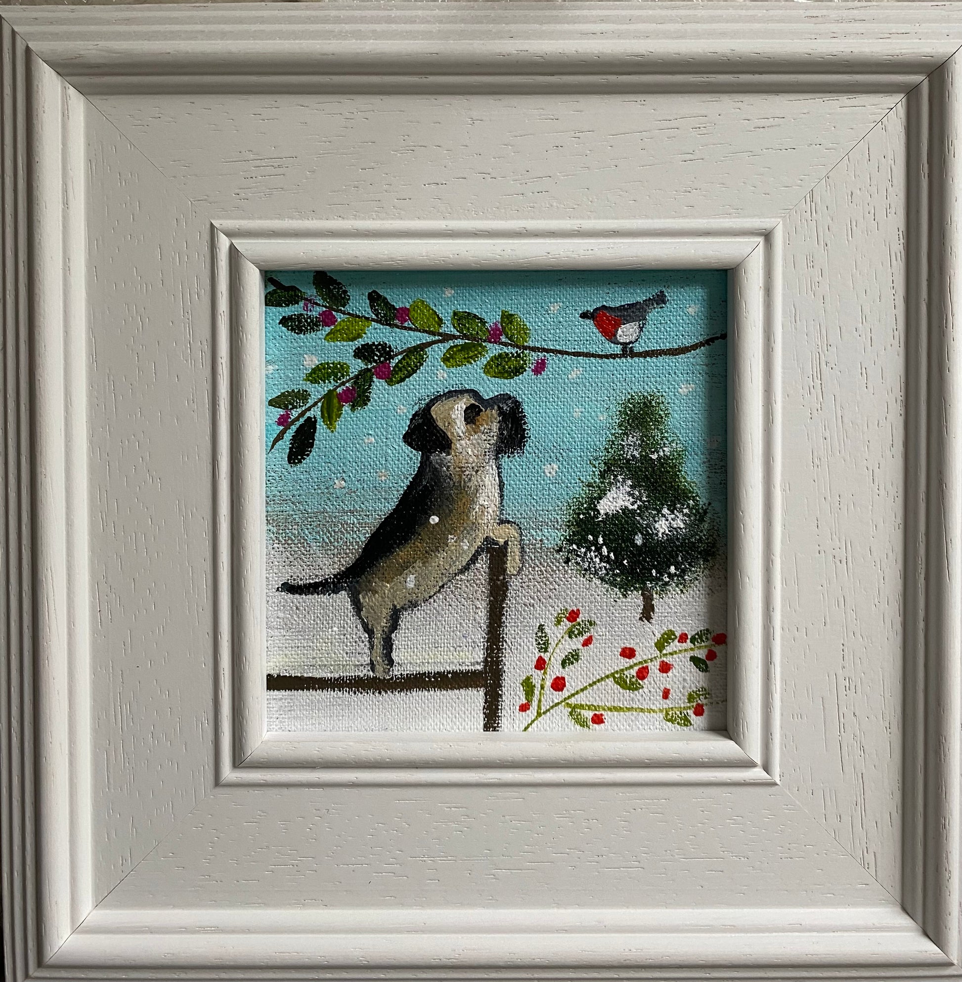 10cm x 10cm acrylic on linen board in a bespoke wooden frame.