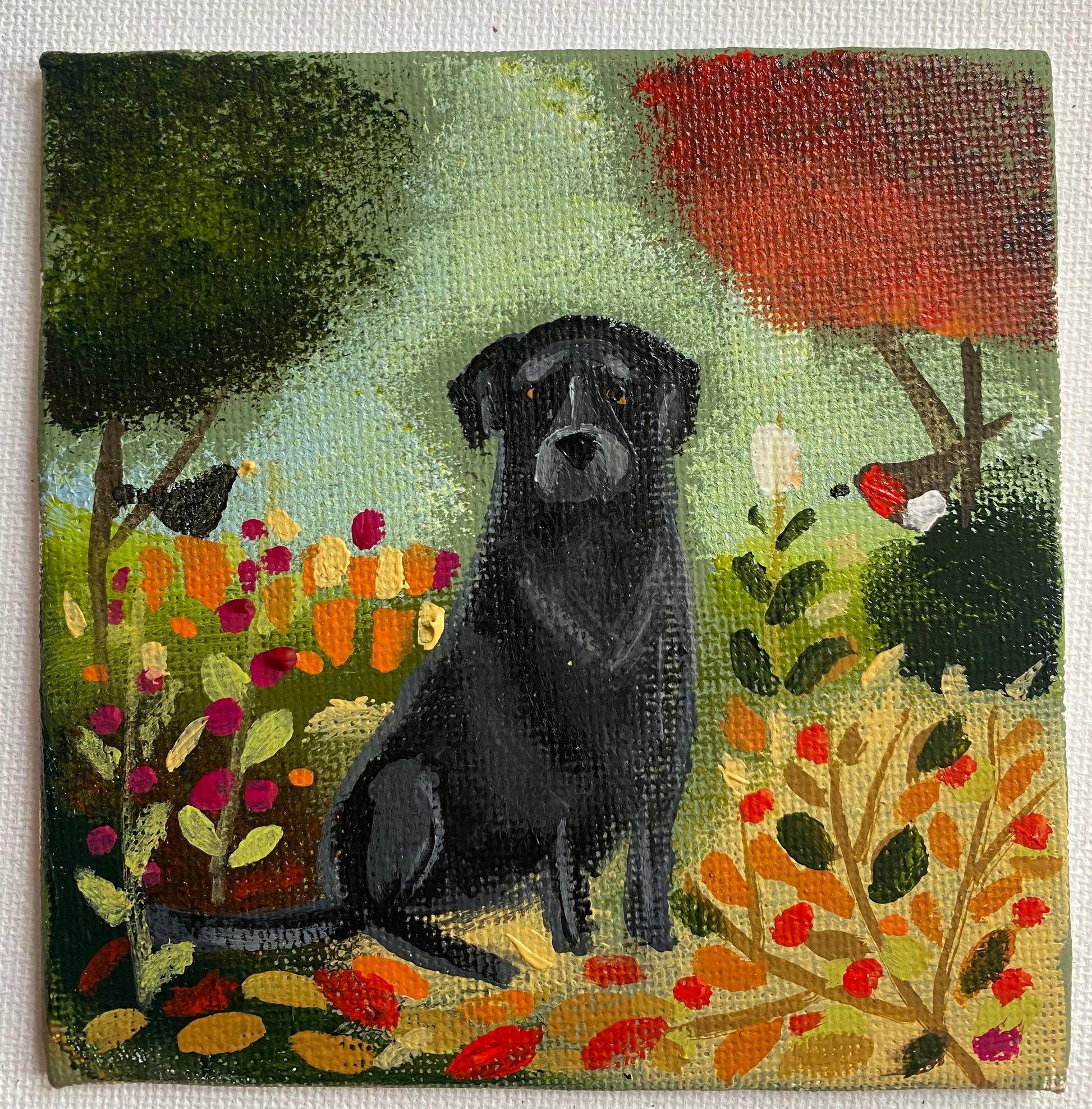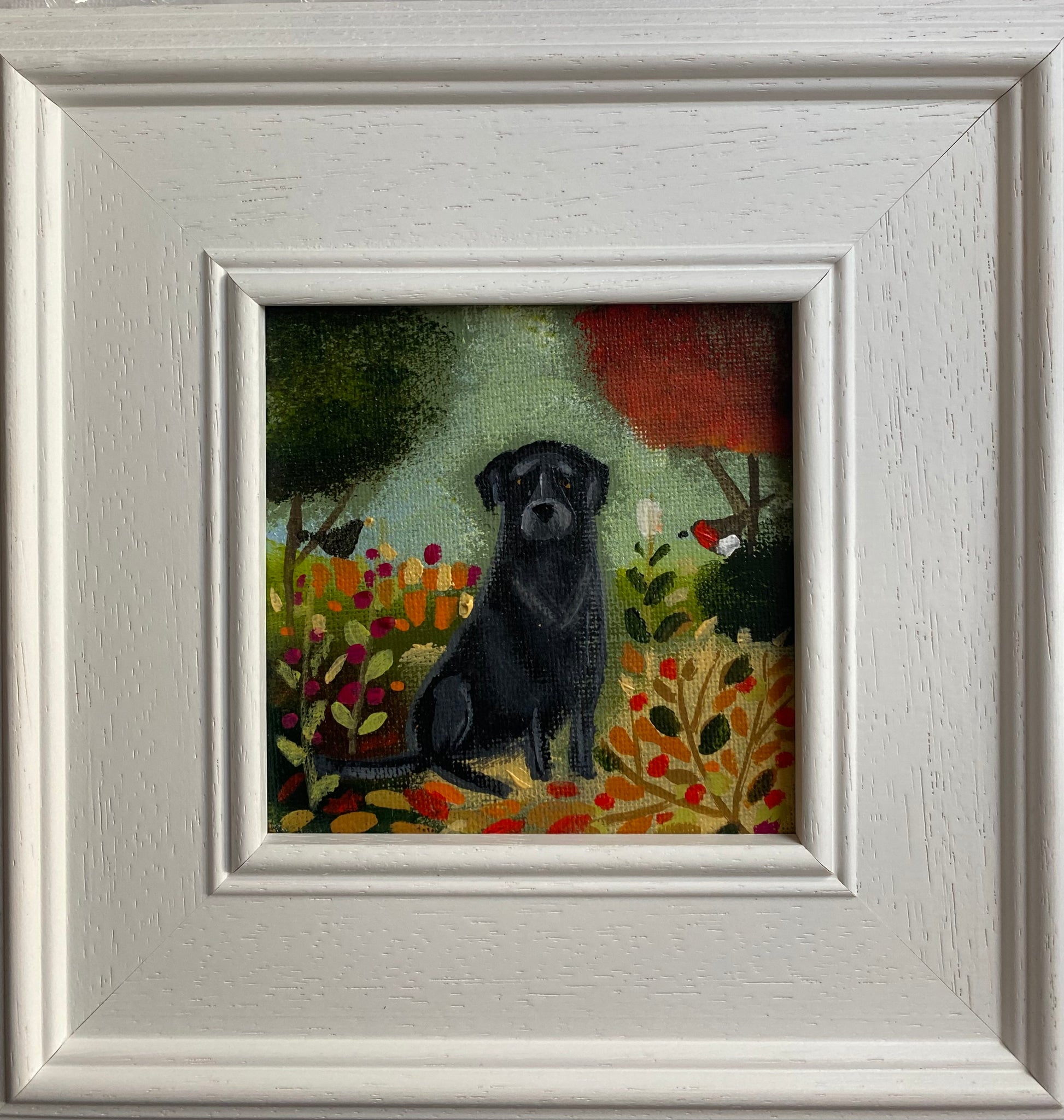 10cm x 10cm acrylic on canvas board in a bespoke wooden frame.