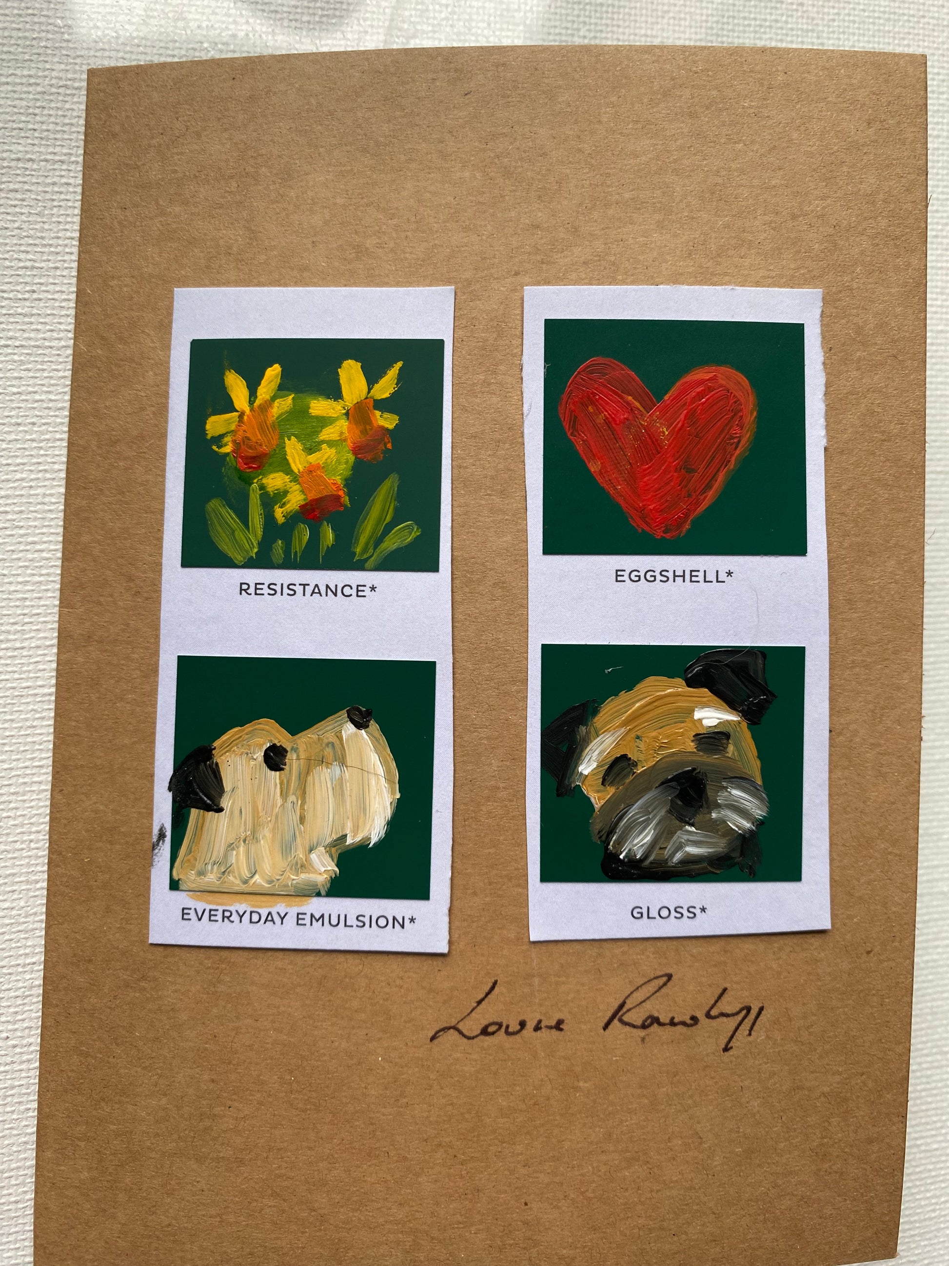 10” x 8” acrylic and emulsion on a ready to hang wooden panel. Background green shade is Farrow & Ball ‘Beverley’