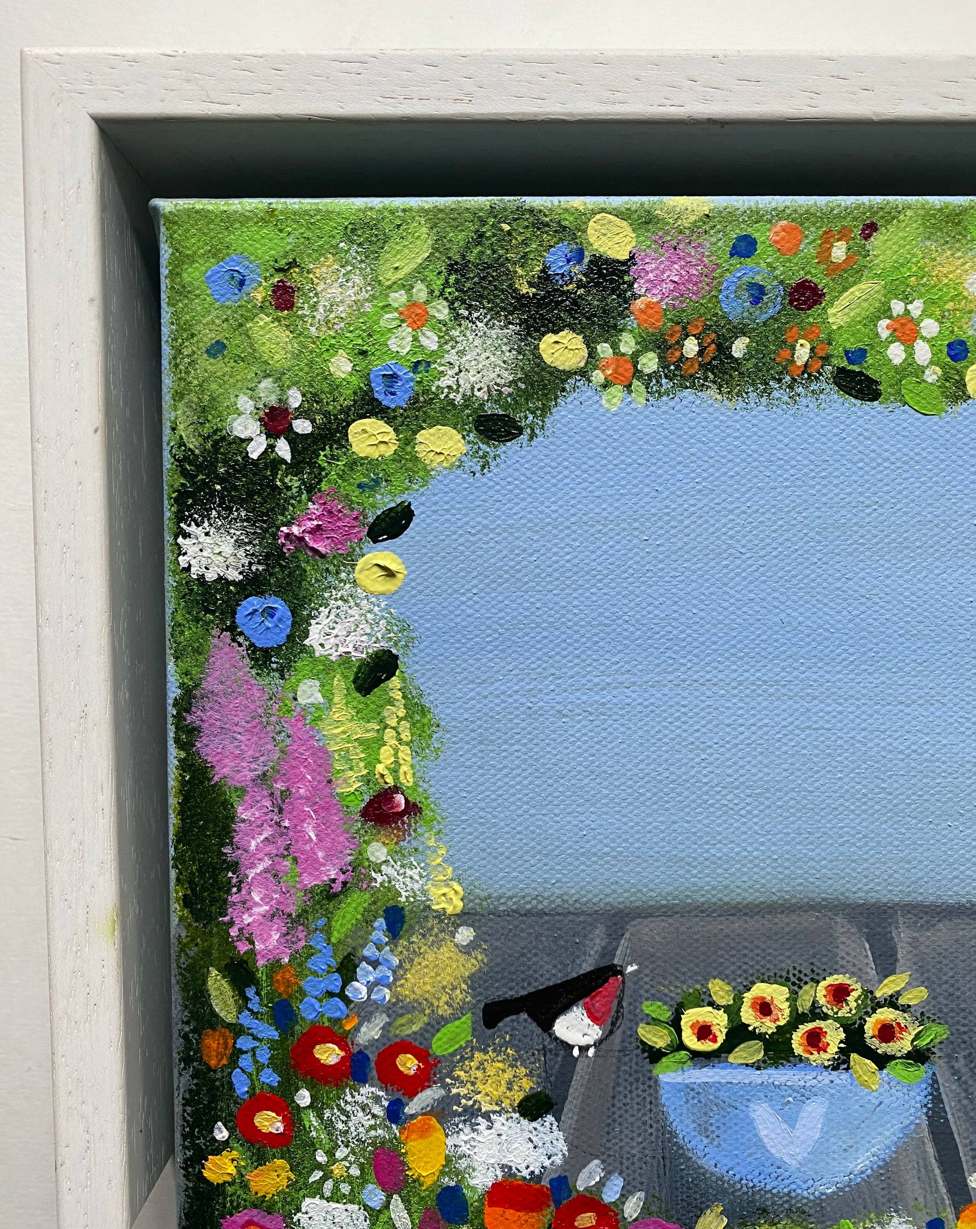 Add up to three dogs to this 20cm x 20cm chunky box canvas. Painting will be placed in a white wooden tray frame after completion