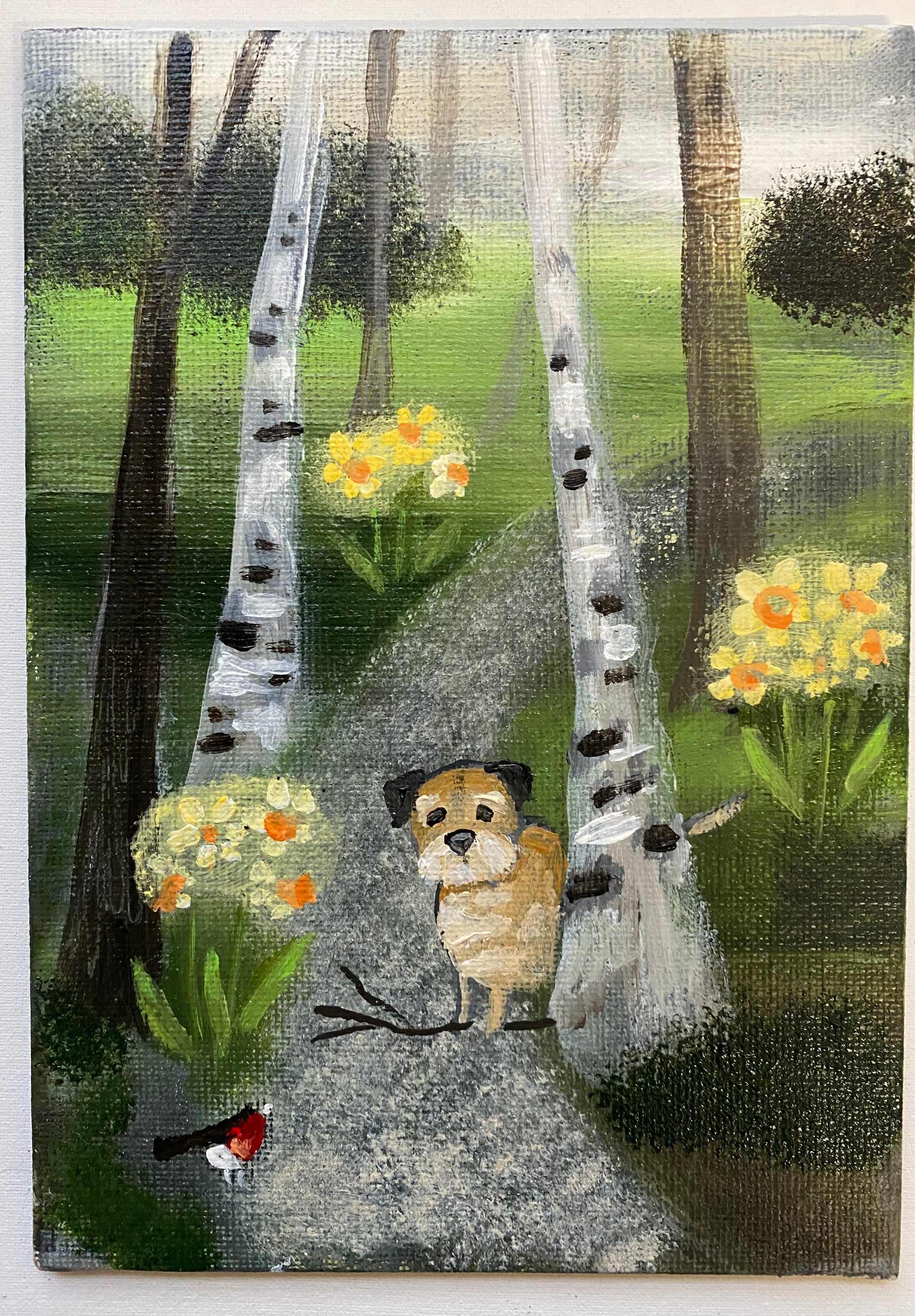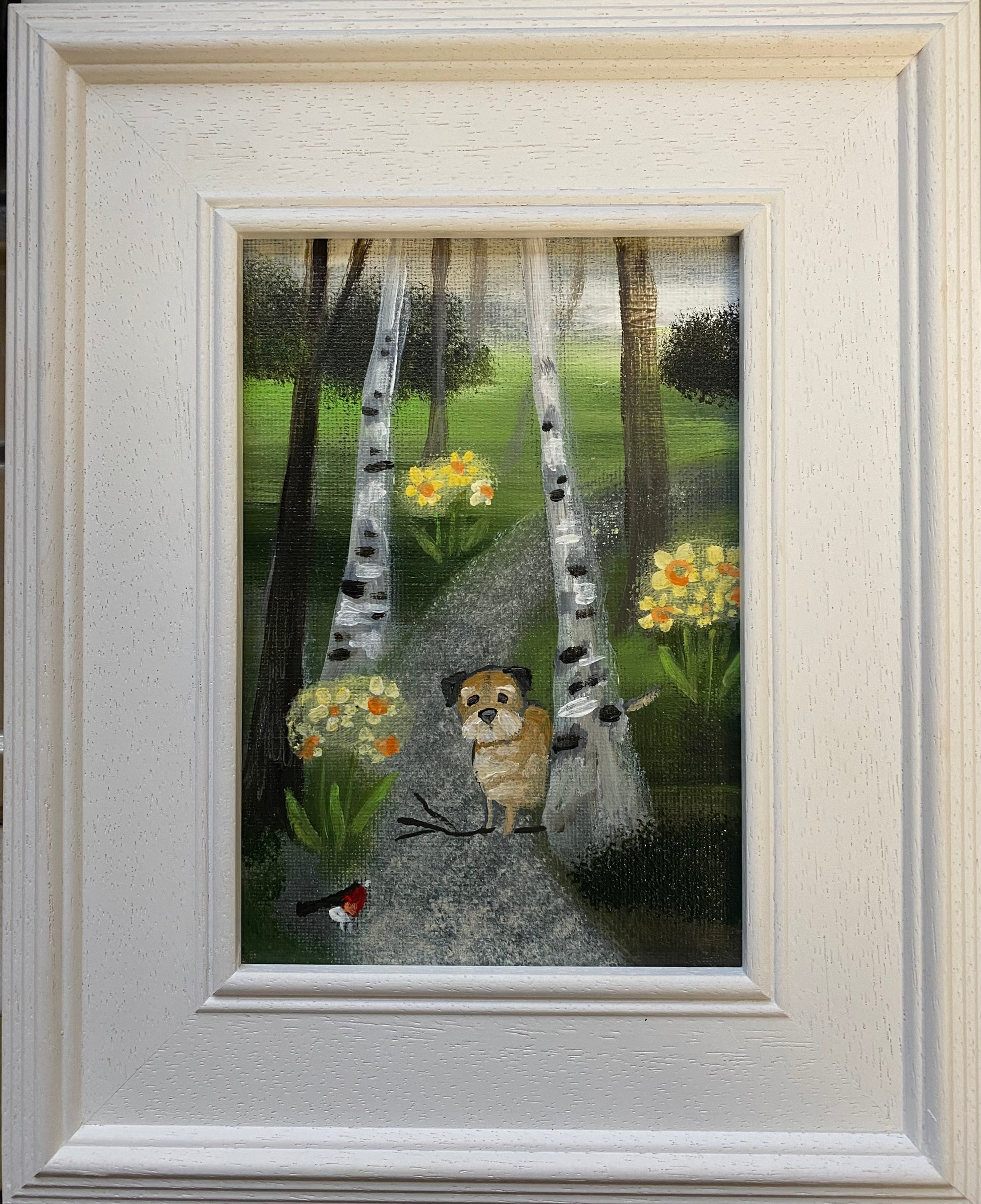 5” x 7” acrylic on canvas board in a bespoke, wooden frame.