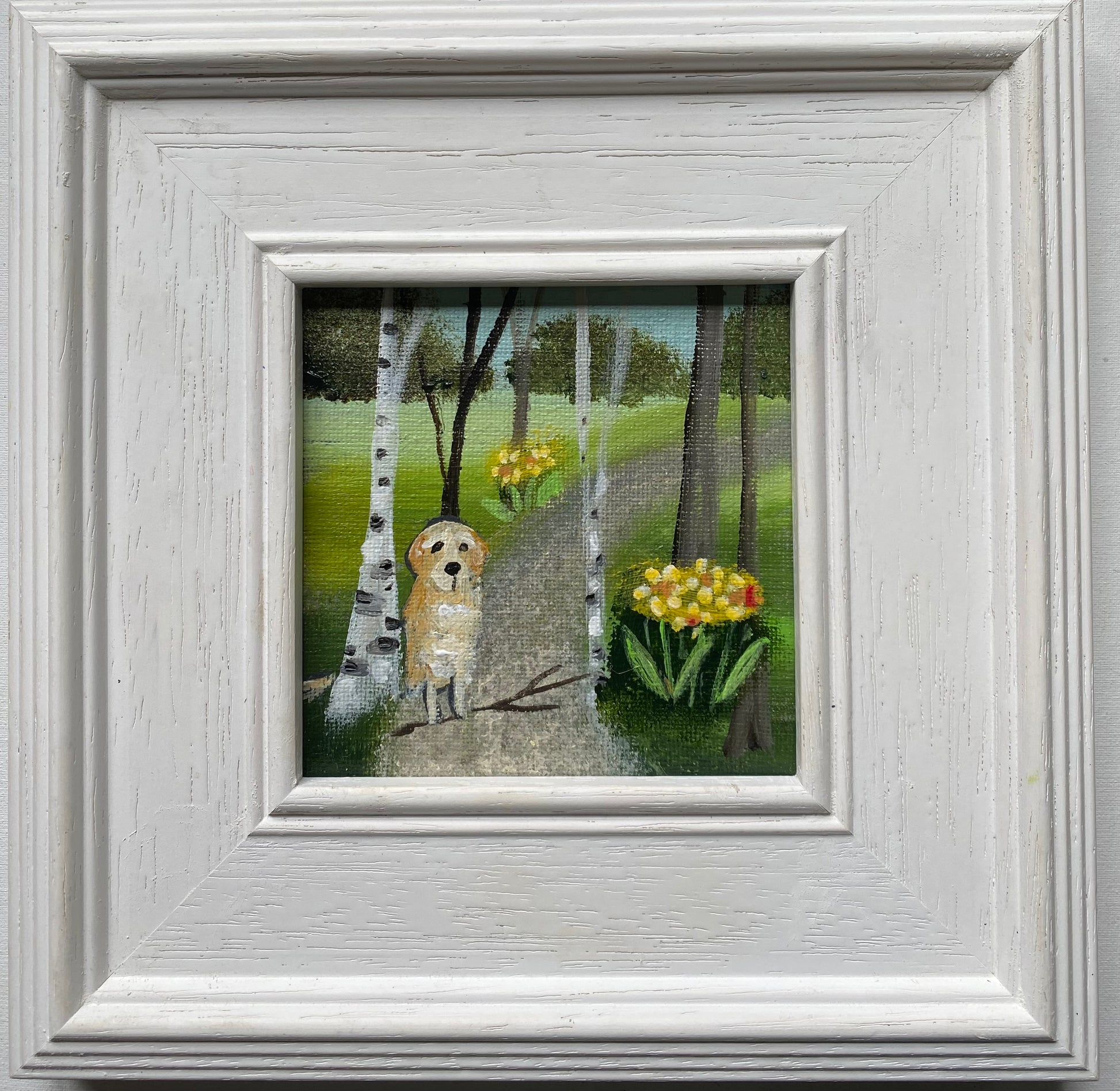 10cm x 10cm acrylic on canvas board in a bespoke wooden frame.