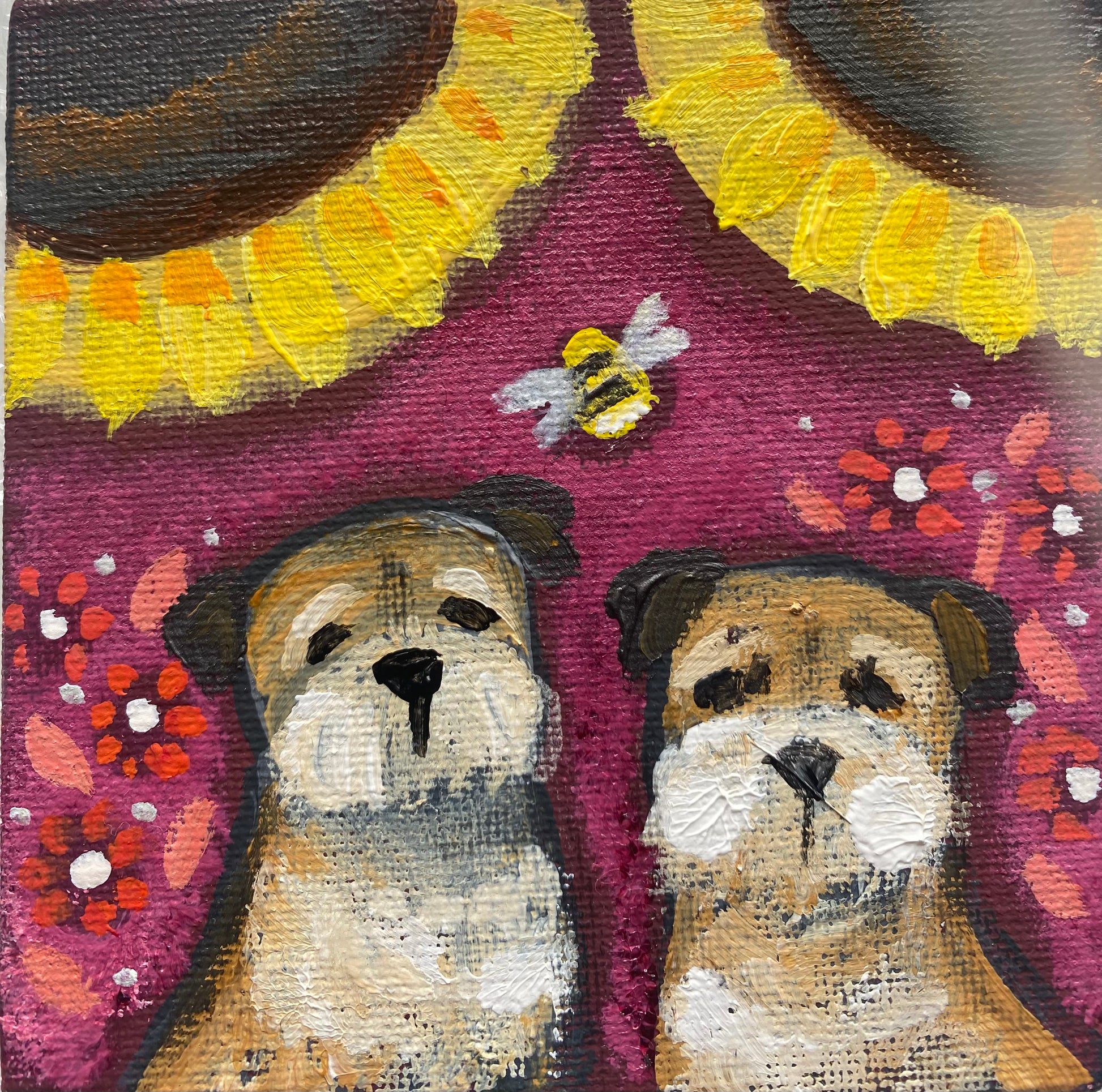 10cm x 10cm acrylic on canvas board in a bespoke wooden frame.