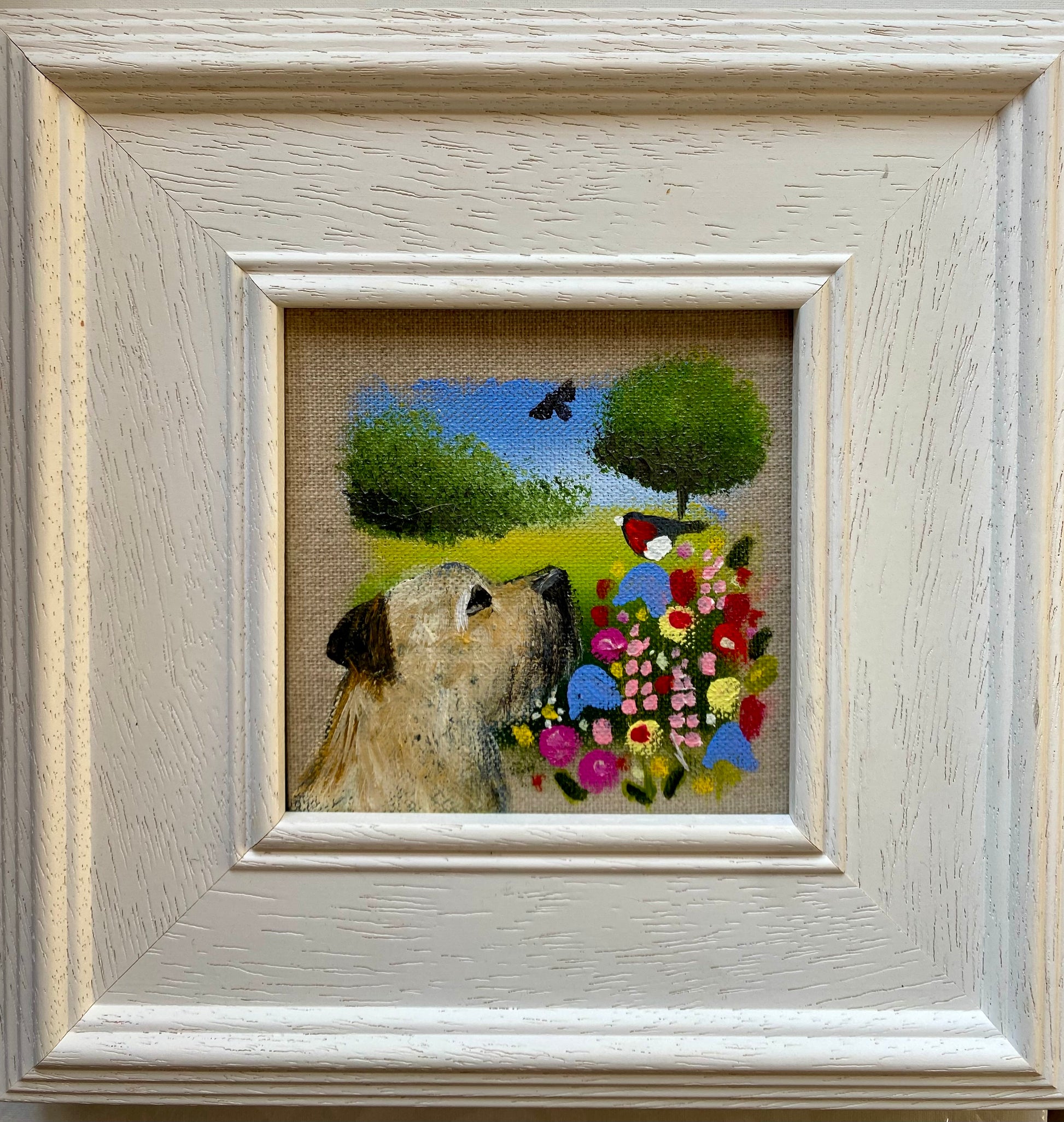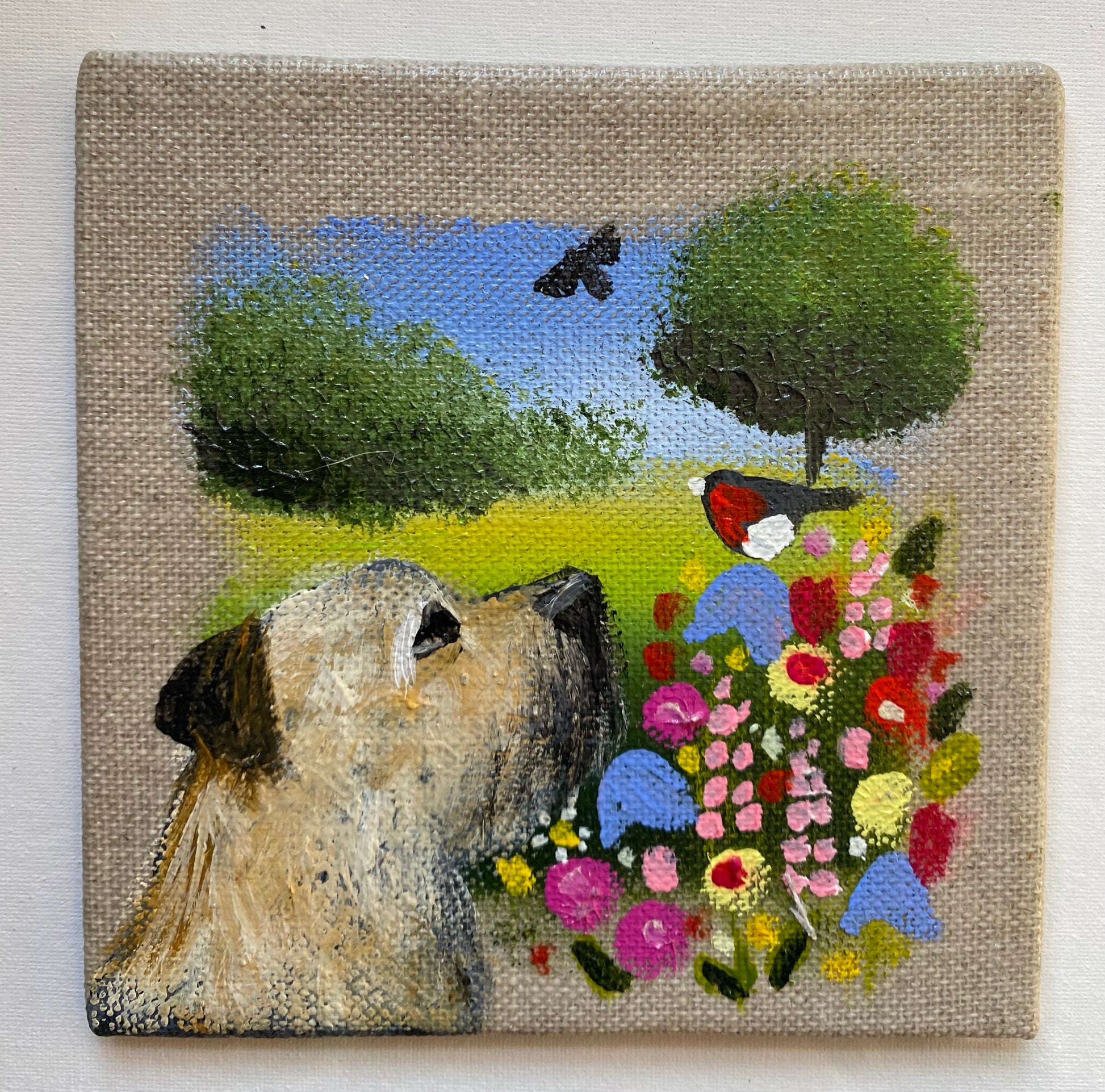 10cm x 10cm acrylic on linen board in a bespoke wooden frame