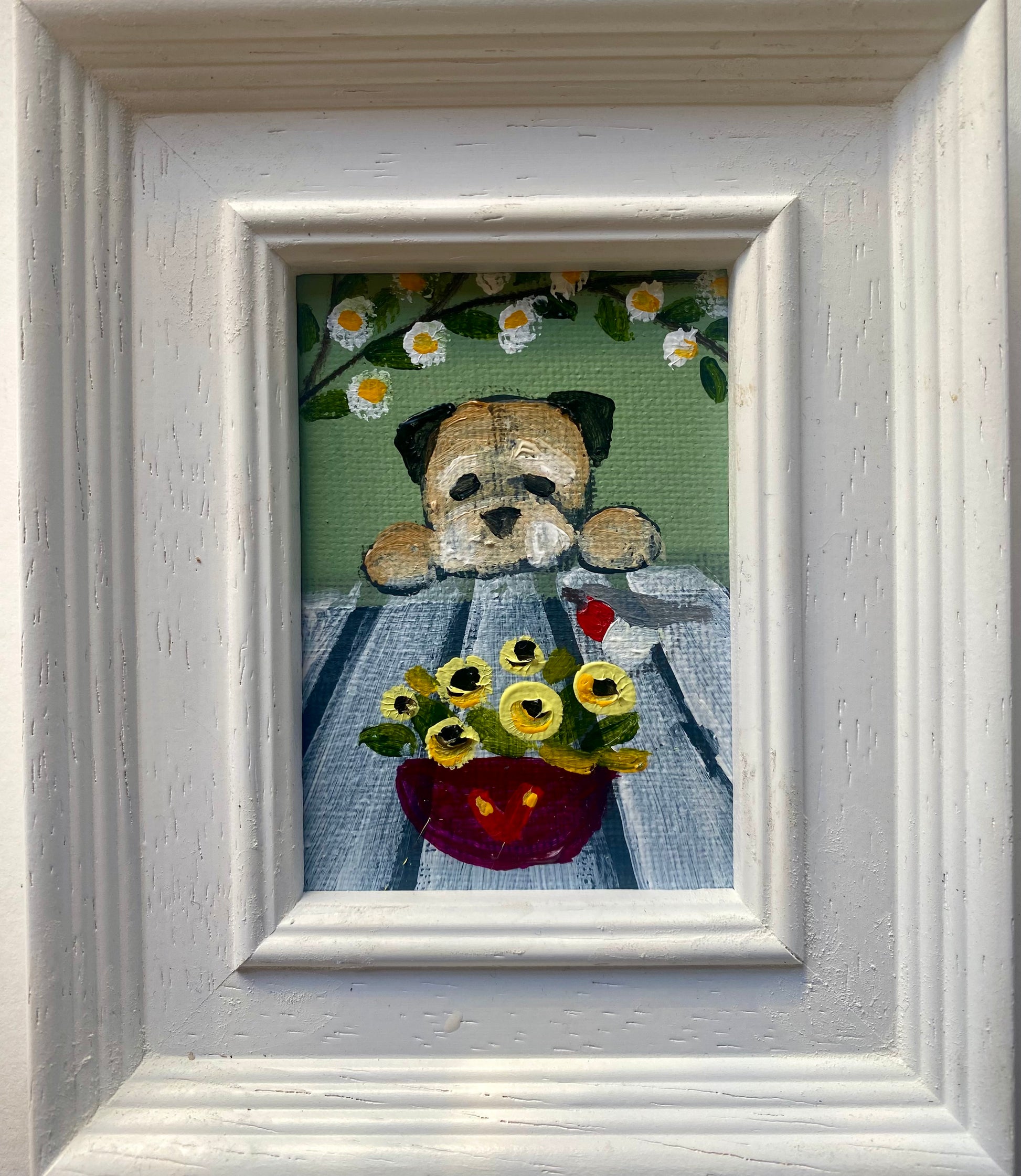 2.5” x 3.5” mini canvas board original in a bespoke wooden frame