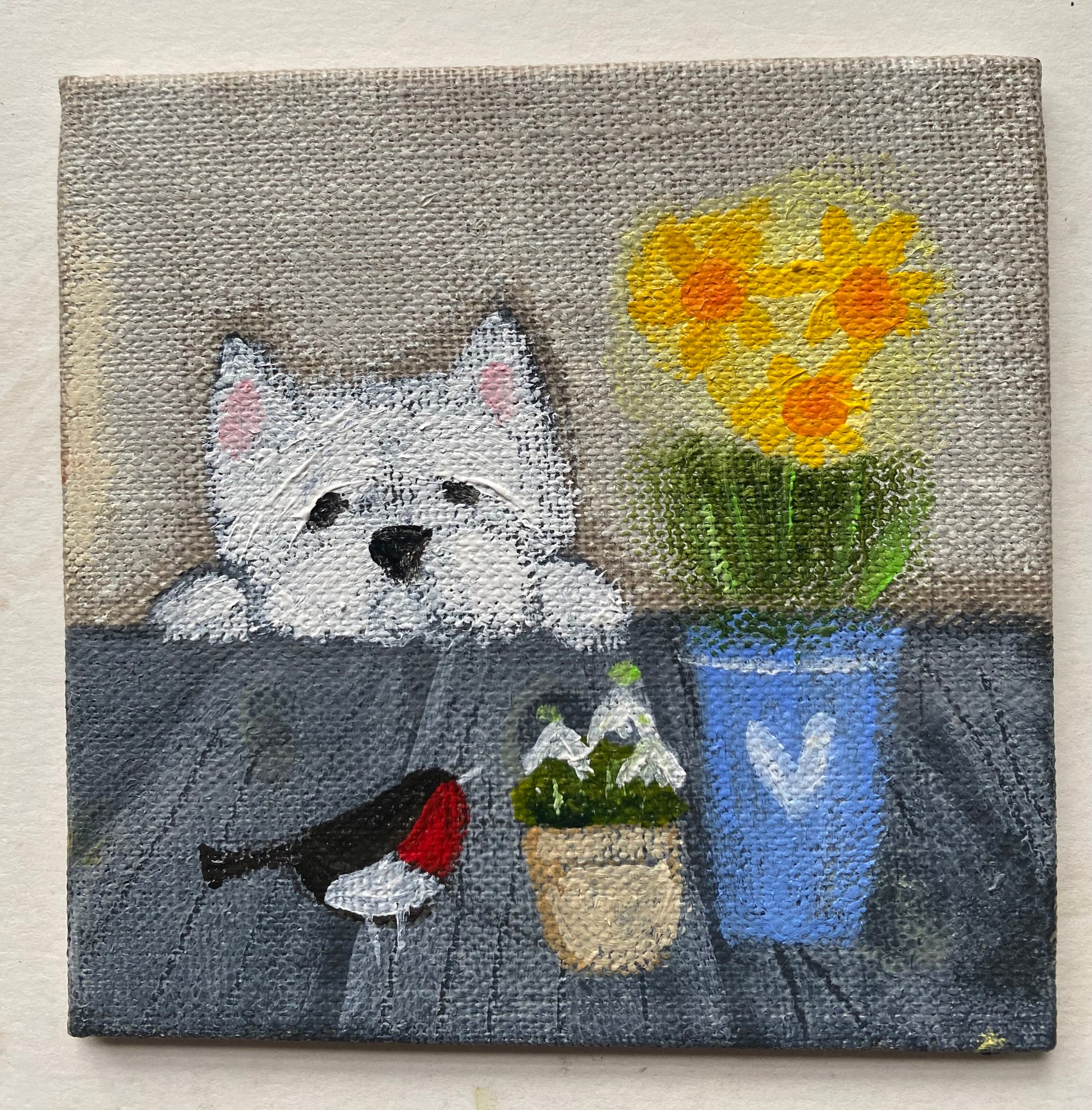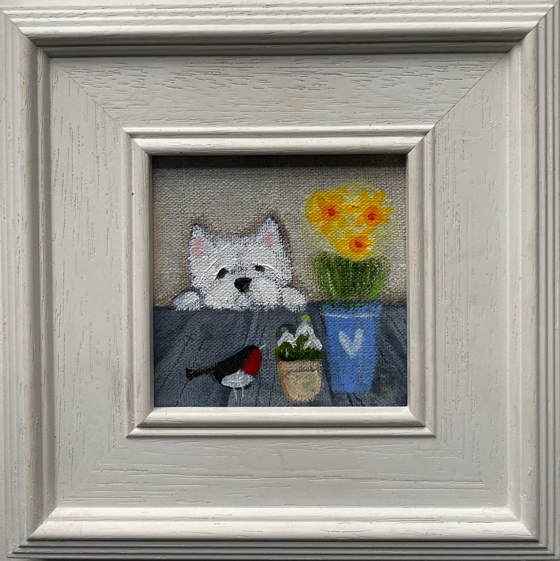 10cm x 10cm acrylic on linen board in a bespoke wooden frame.