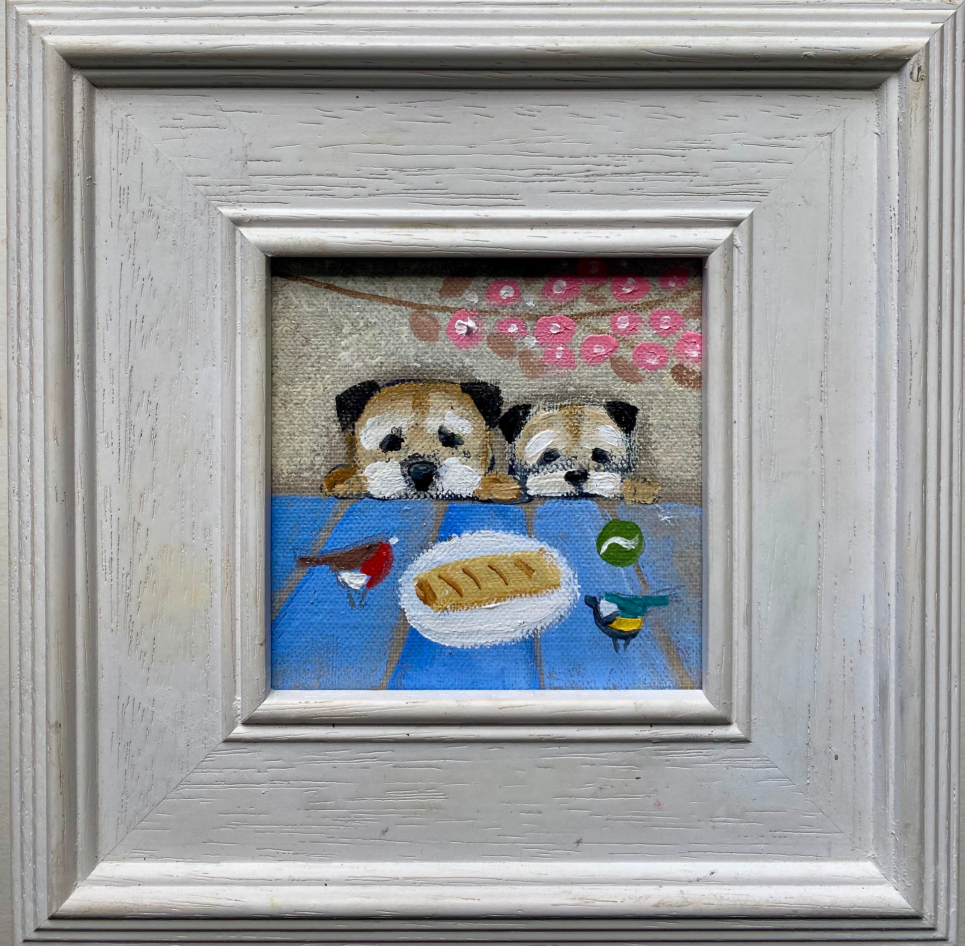 10cm x 10cm acrylic on linen board in a bespoke wooden frame