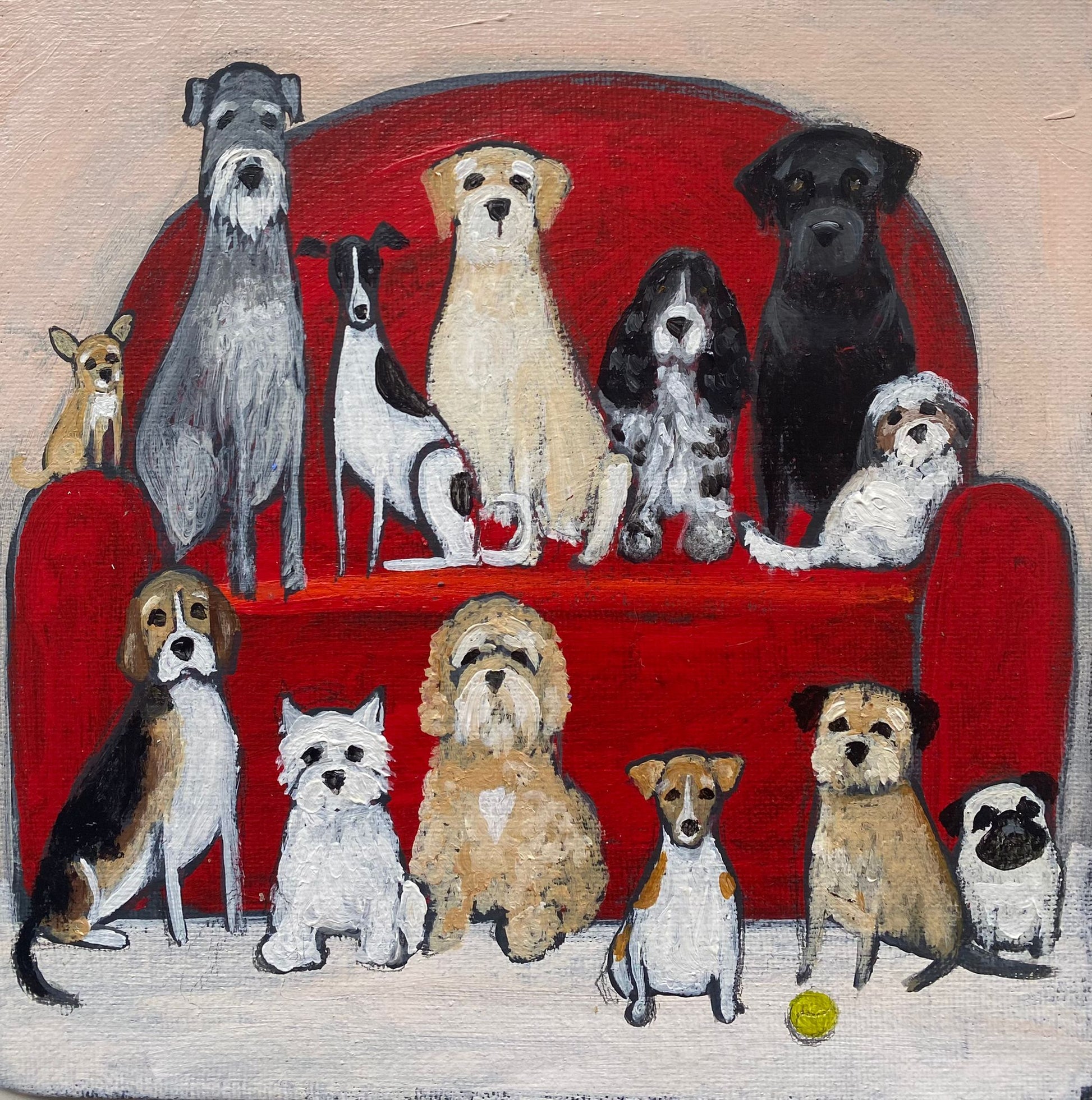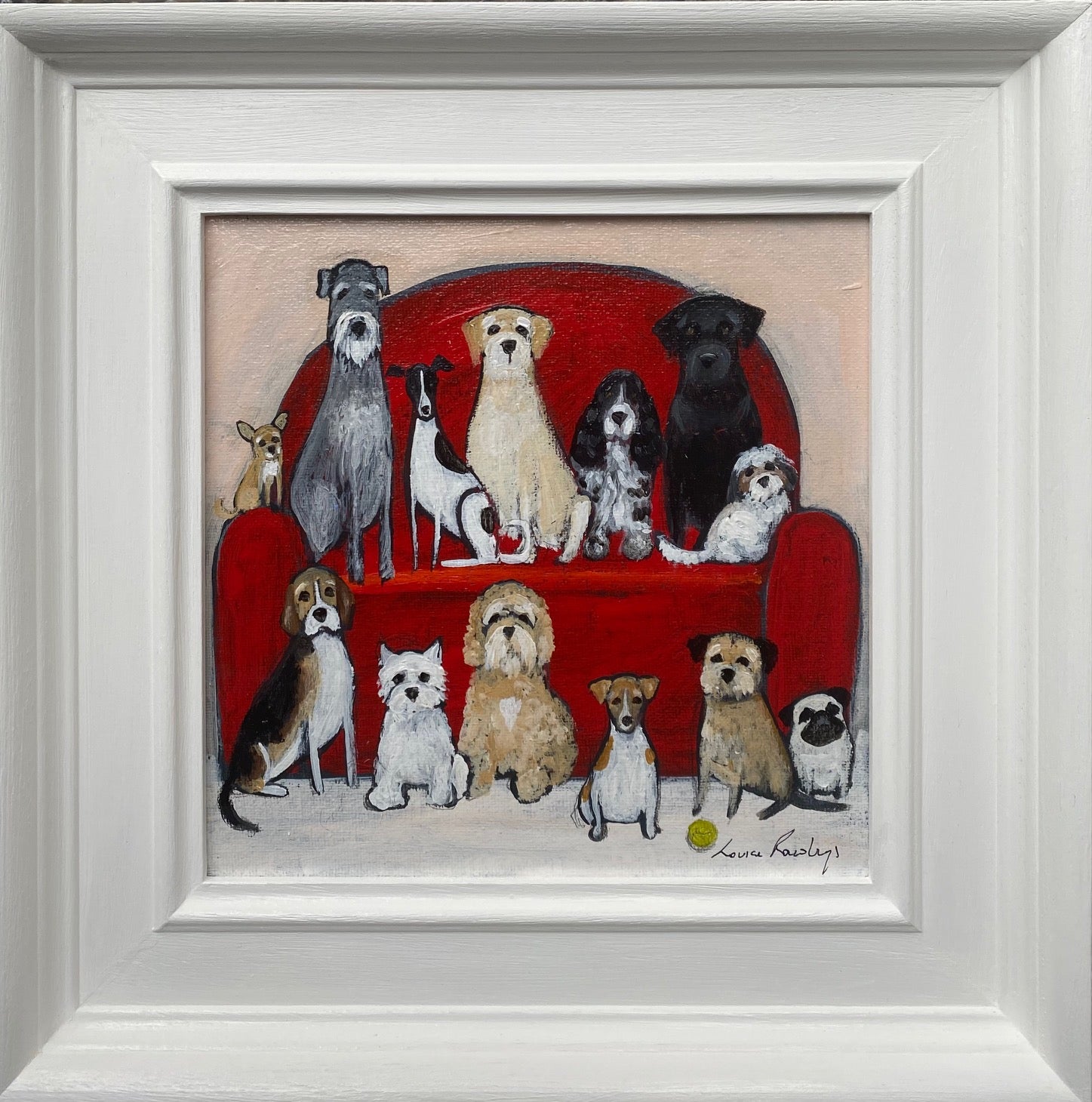 20cm x 20cm acrylic on canvas board original in a bespoke white waxed frame.