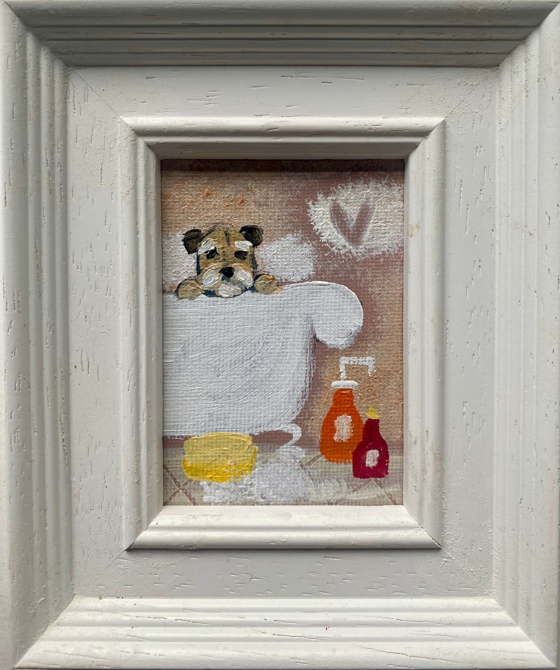 2.5” x 3.5” mini canvas board in a bespoke wooden frame.
