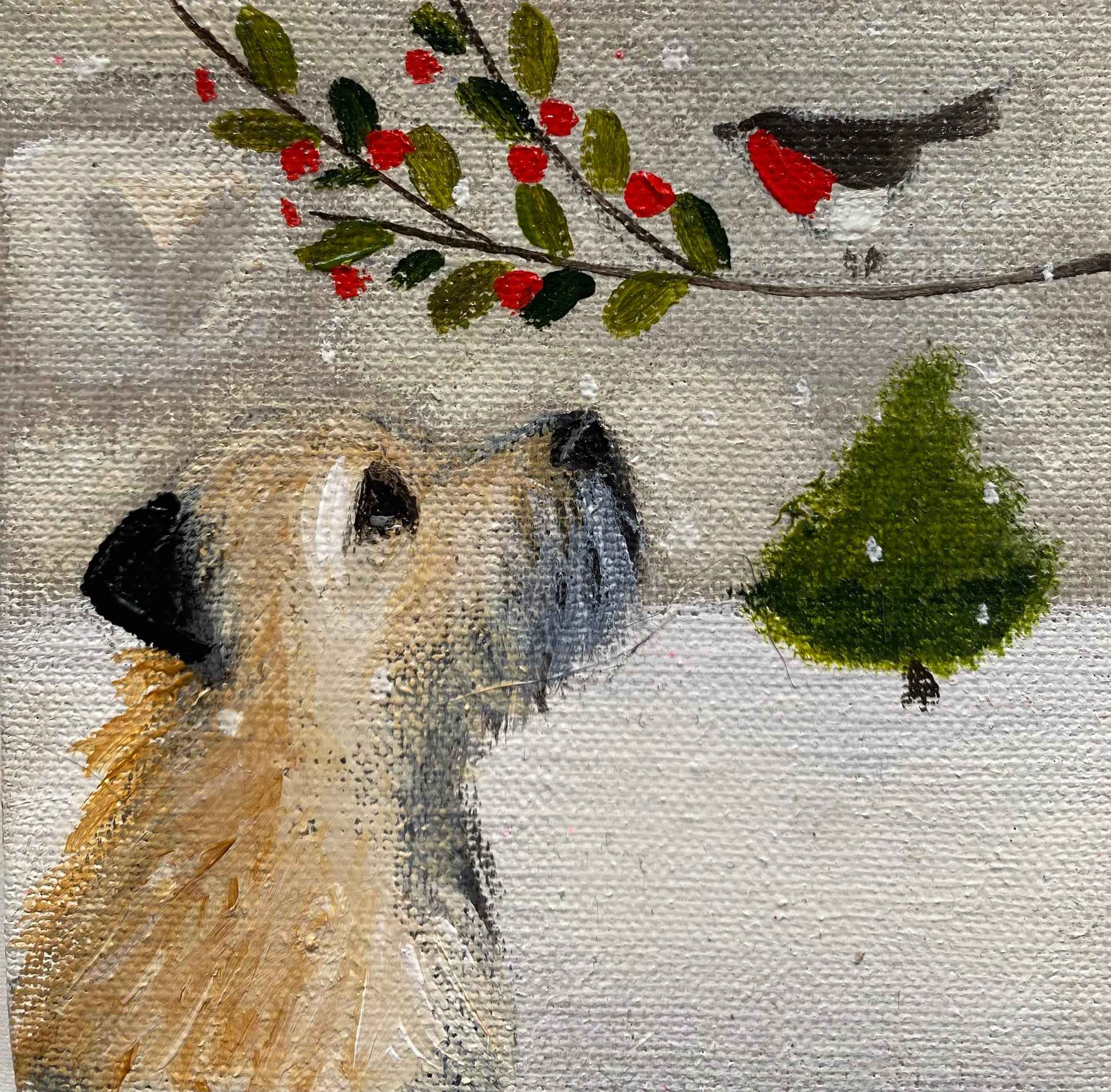 10cm x 10cm acrylic on linen board in a bespoke wooden frame