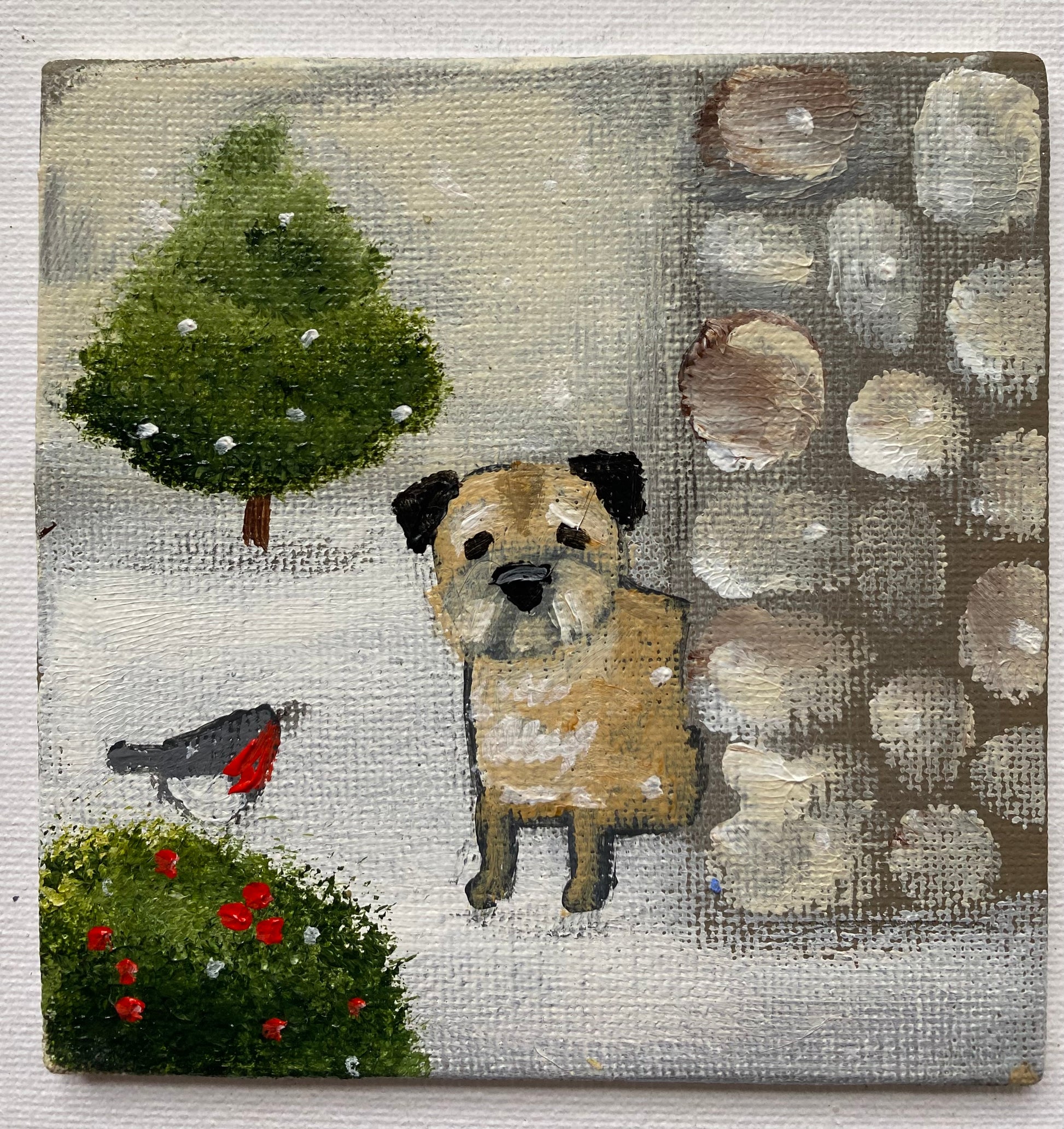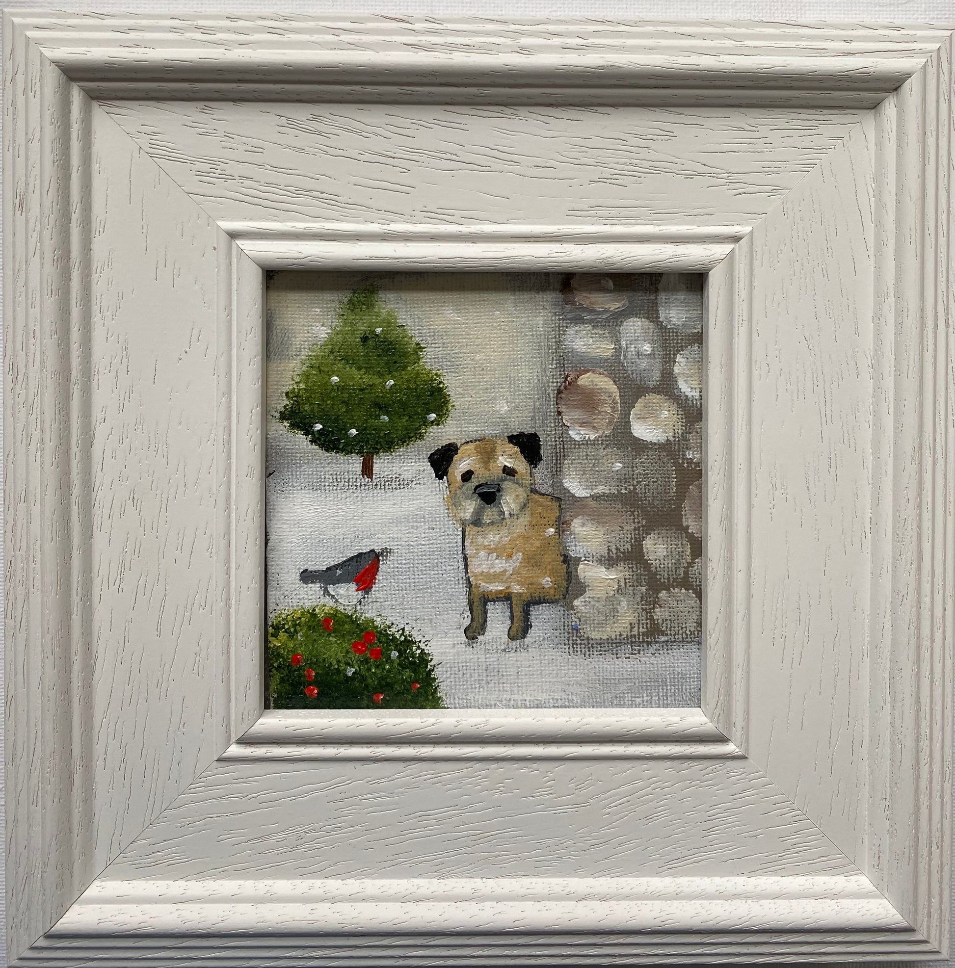 10cm x 10cm canvas board and n a bespoke wooden frame