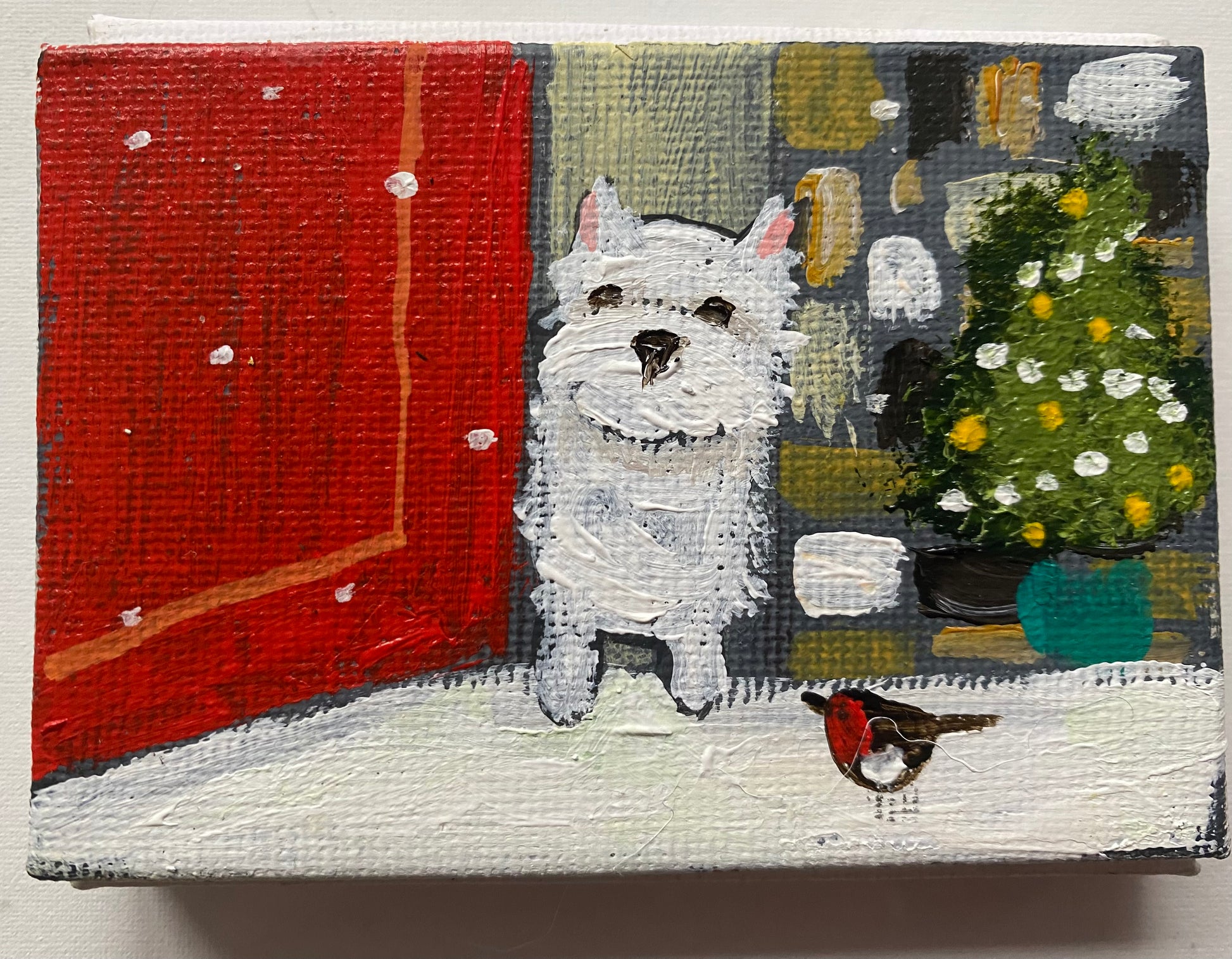2.5” x 3.5” mini canvas board in a bespoke wooden frame