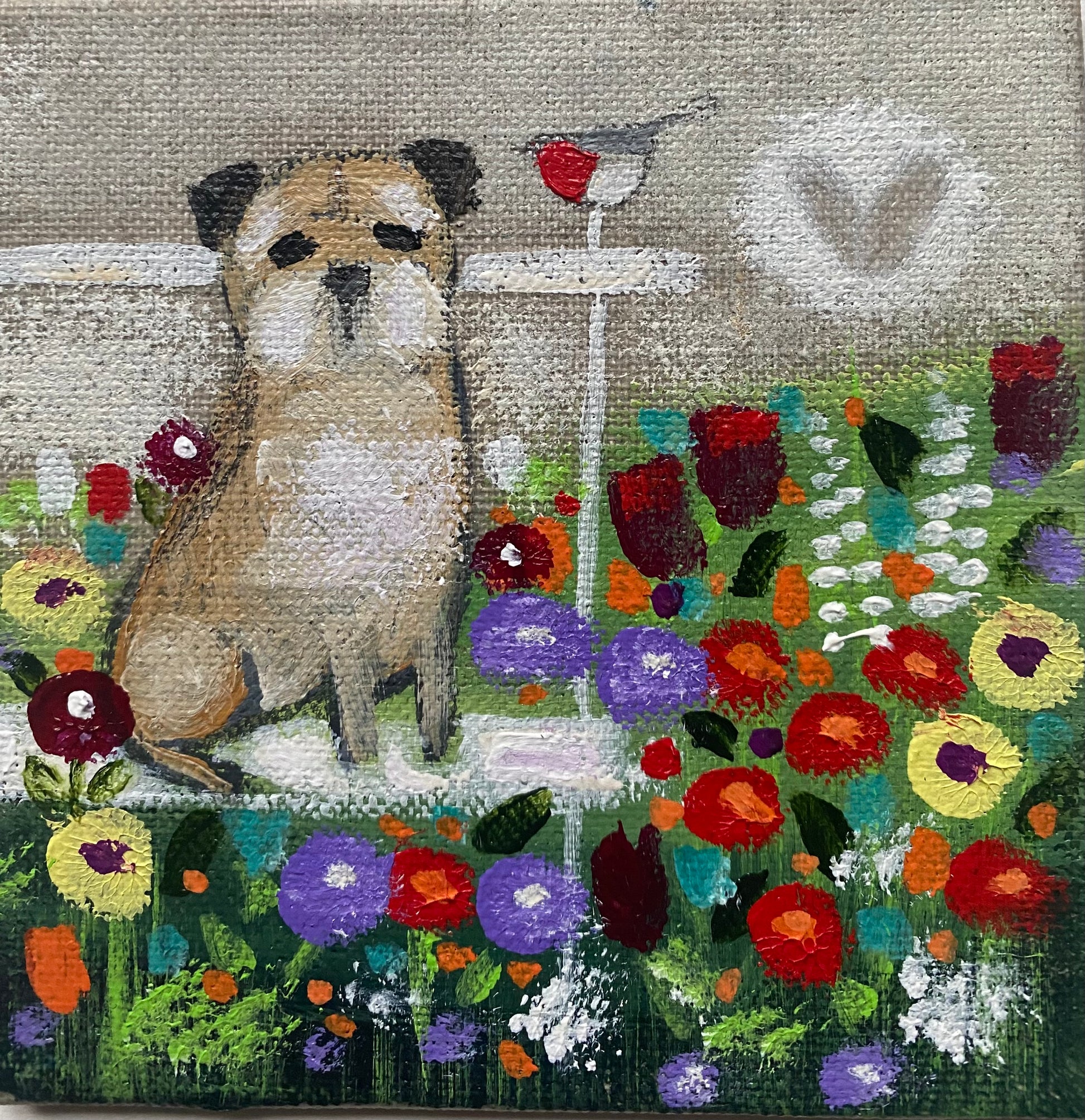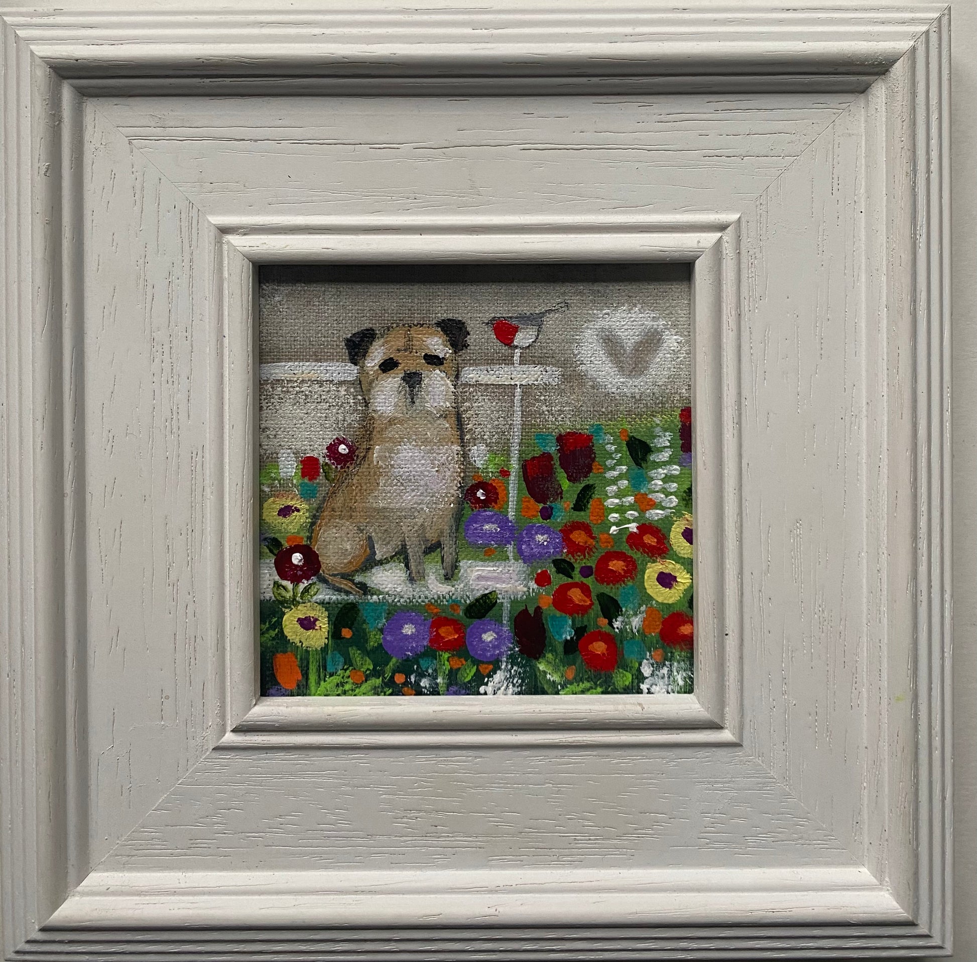 10cm x 10cm acrylic on linen board in a bespoke wooden frame.