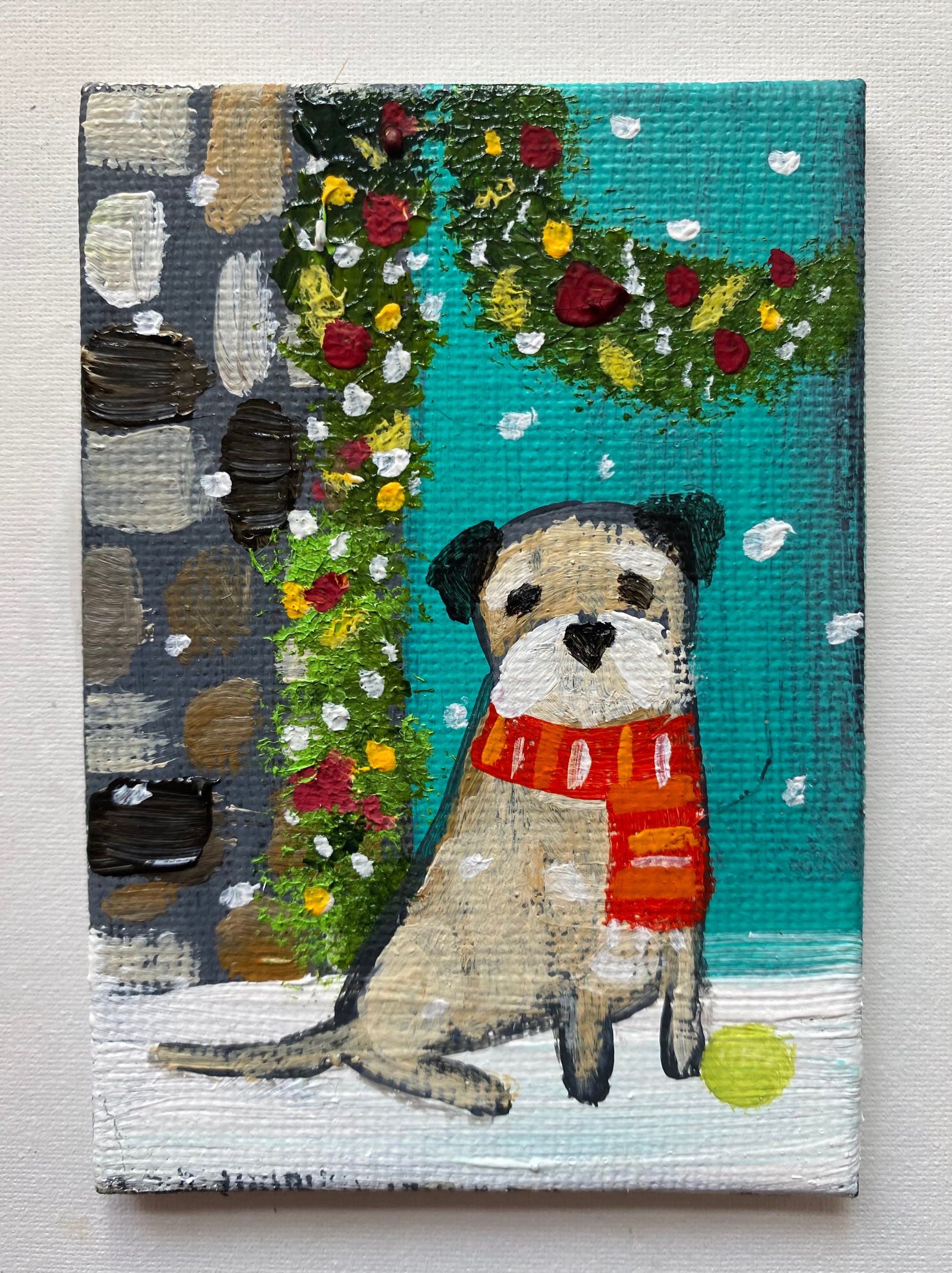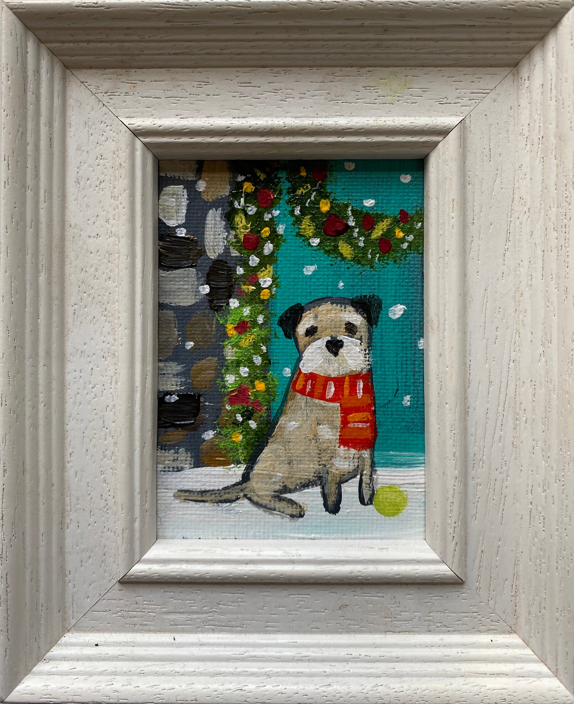 2.5” x 3.5” mini canvas board in a bespoke wooden frame.
