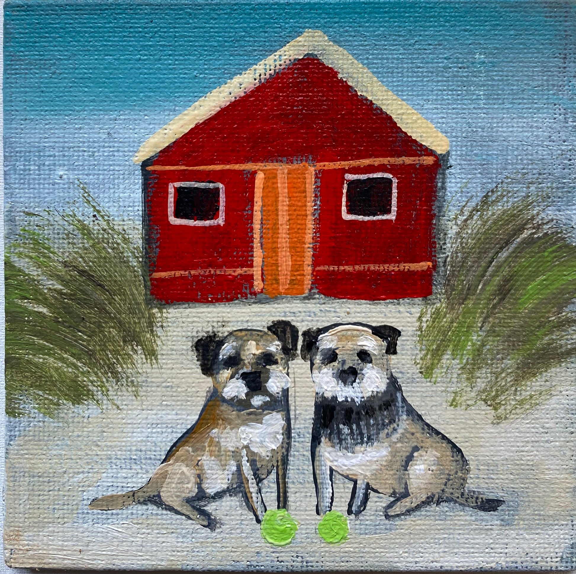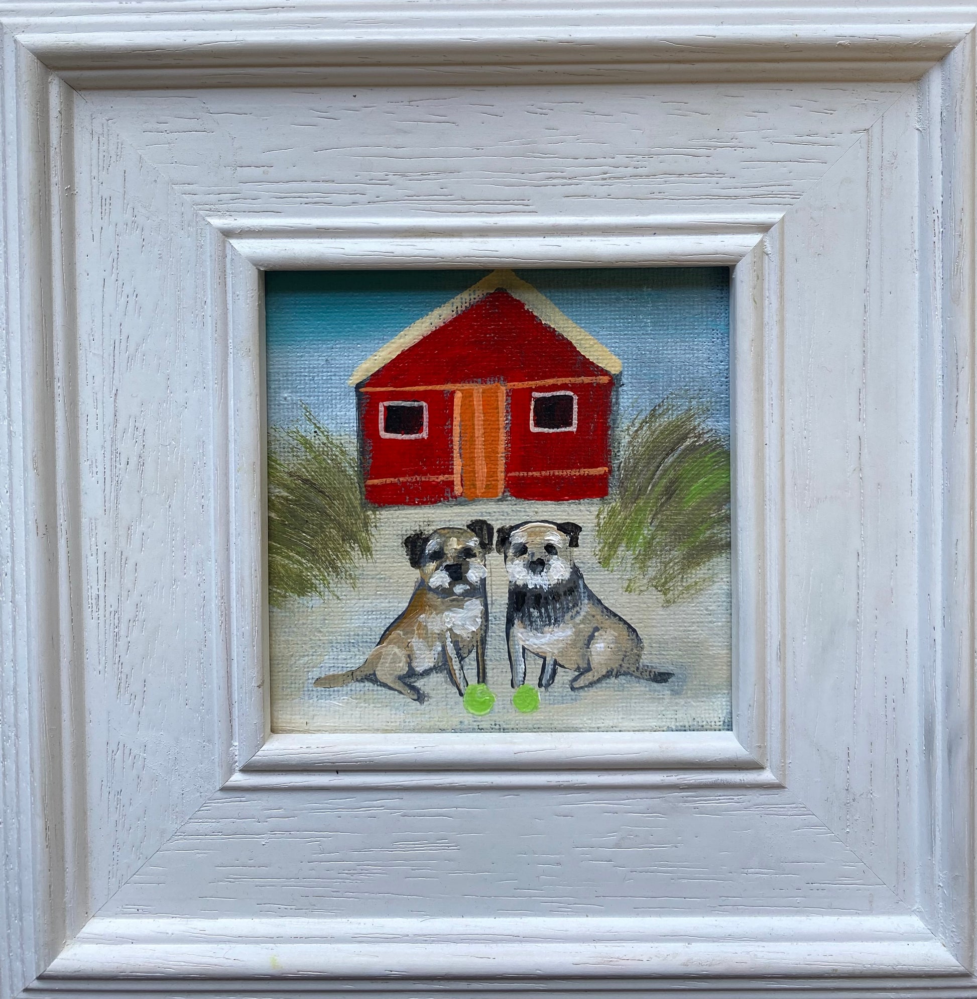 10cm x 10cm canvas board original in a bespoke wooden frame.