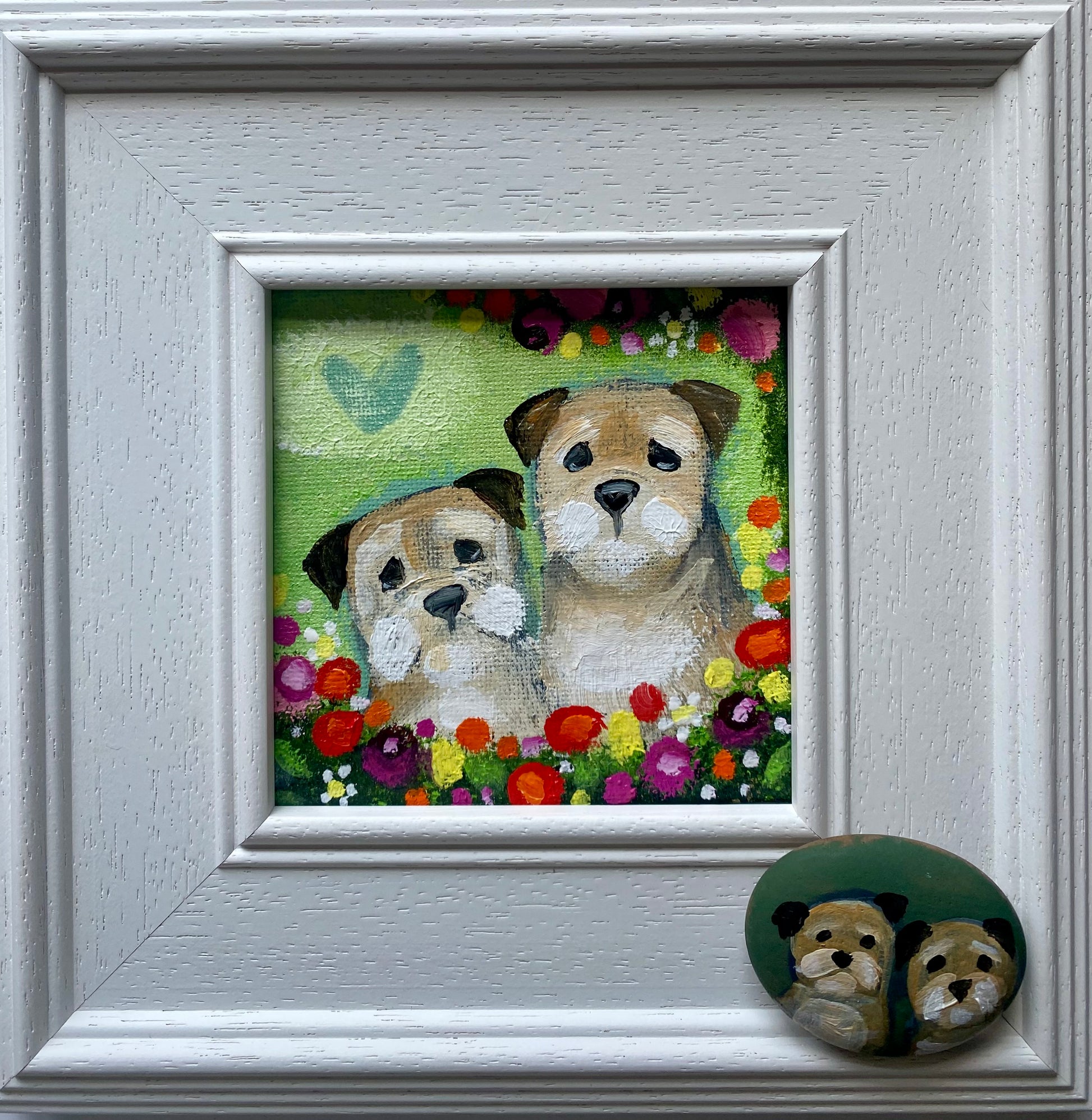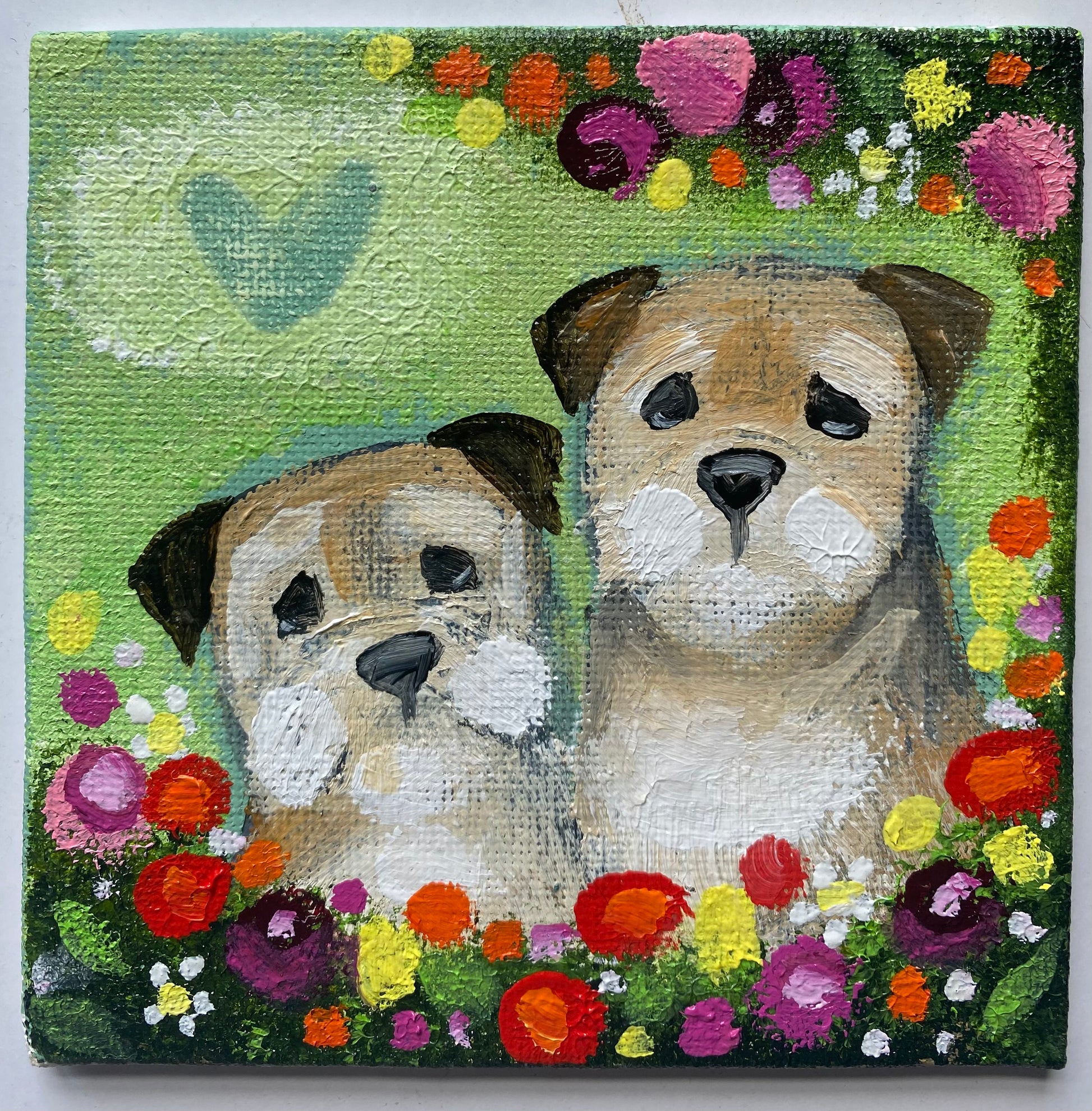 10cm x 10cm canvas board in a bespoke white wooden frame.