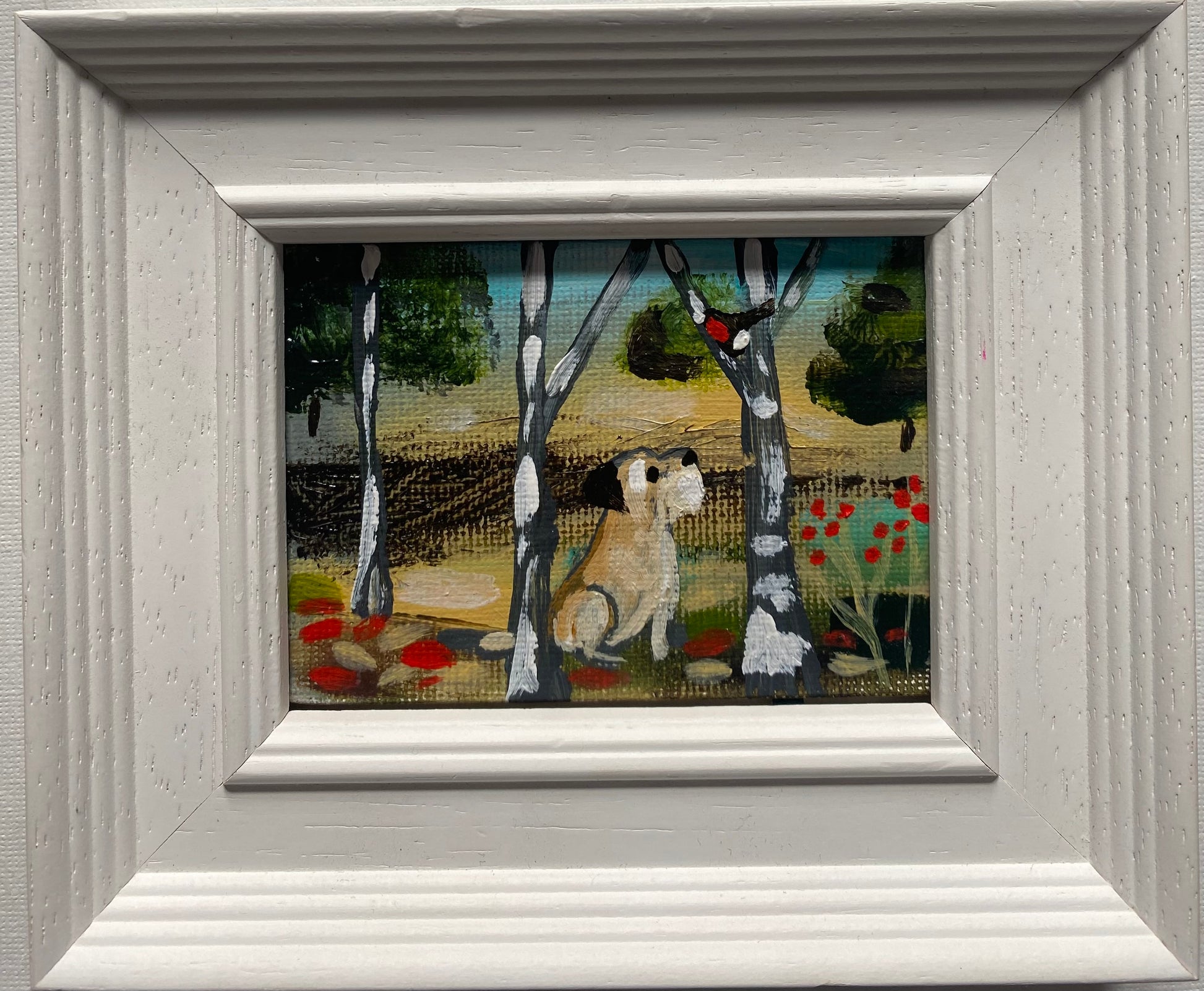 2.5” x 3.5” mini canvas board original in a bespoke wooden frame.