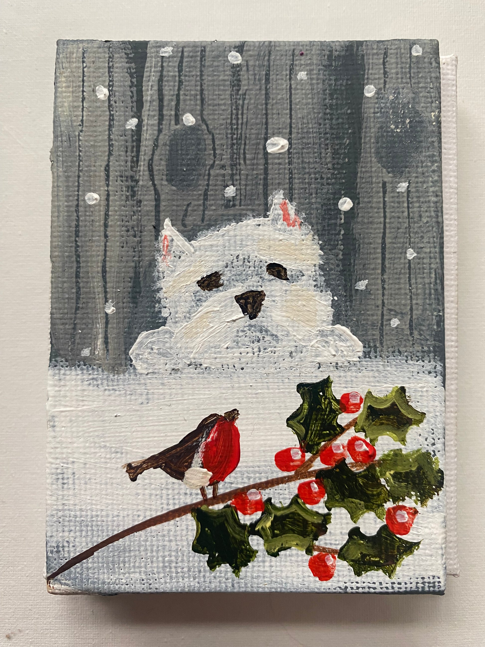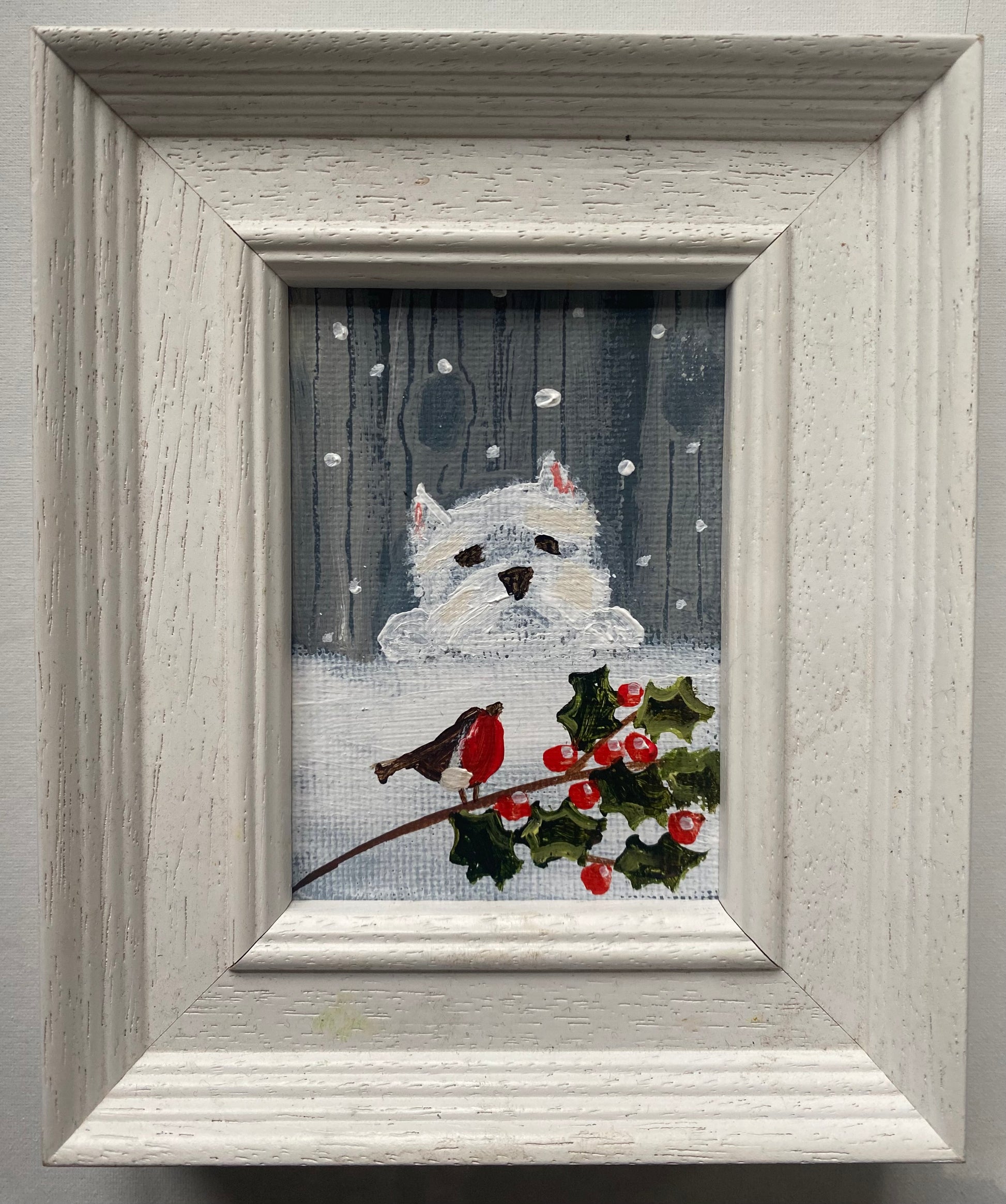 2.5” x 3.5” mini canvas board in a bespoke wooden frame