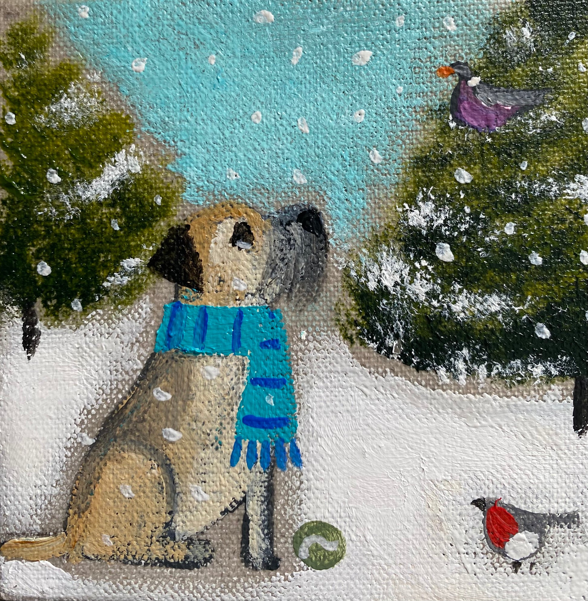10cm x 10cm acrylic on linen board in a bespoke wooden frame