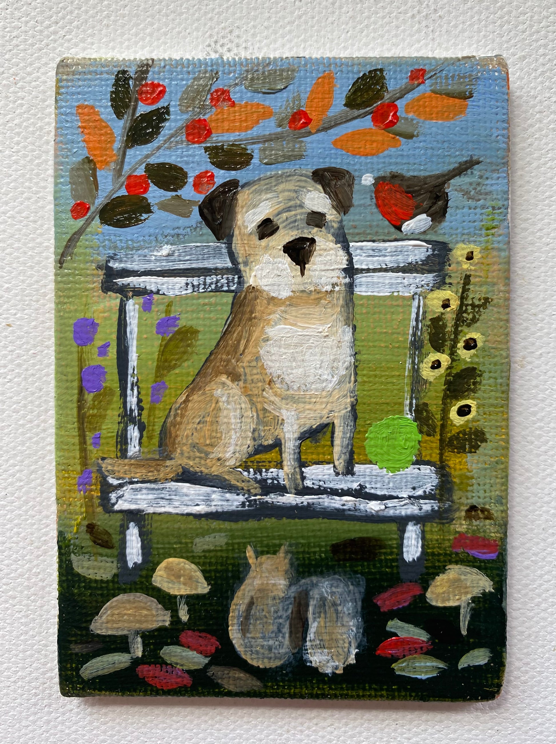 2.5” x 3.5” mini canvas board original in a bespoke wooden frame